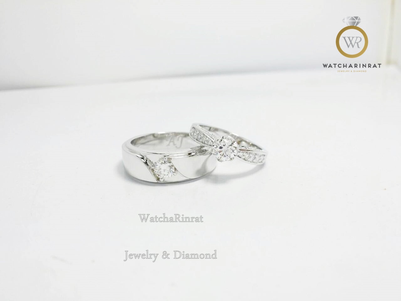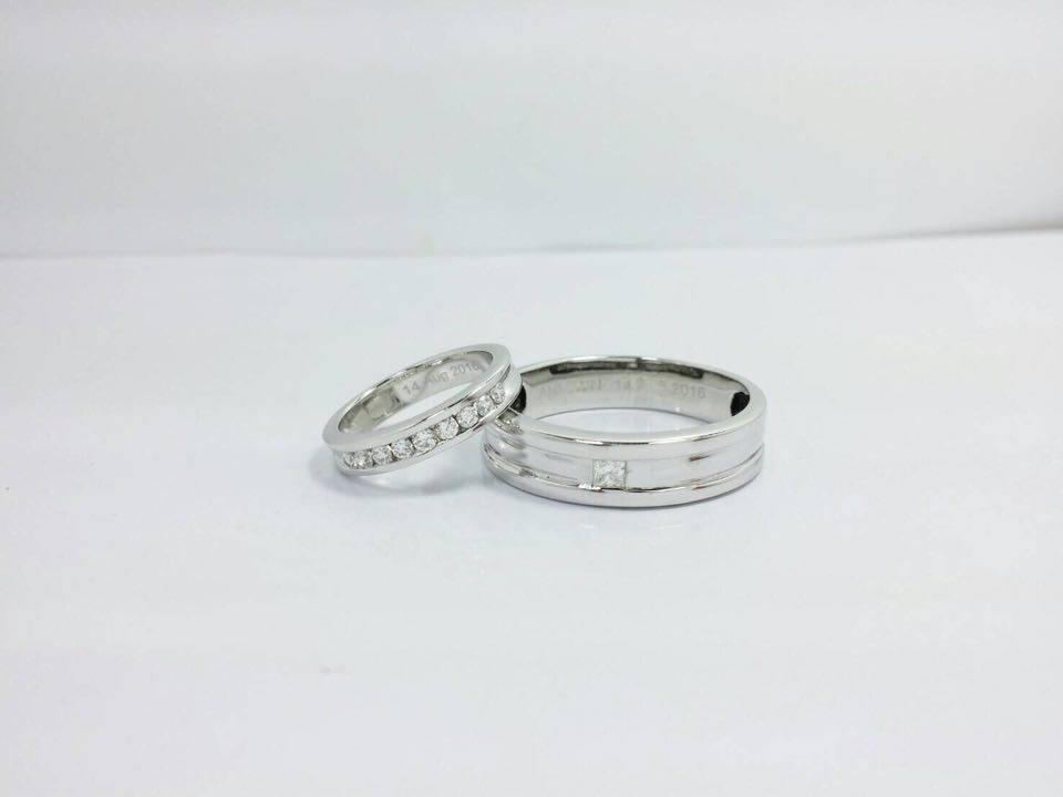 แหวนชาย ทองคำขาว 9K หนัก 4.88 กรัม / ประดับเพชรแท้ สี่เหลี่ยมปริ้นเซส หนัก 0.15 กะรัต น้ำ 97 /แหวนหญิง ทองคำขาว 18K หนัก 3.19 กรัม/ ประดับเพชรแท้ 37 เม็ด หนัก 0.45 กะรัต น้ำ97เพิ่มเติม