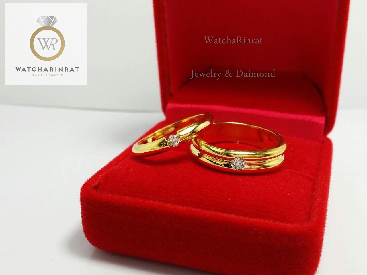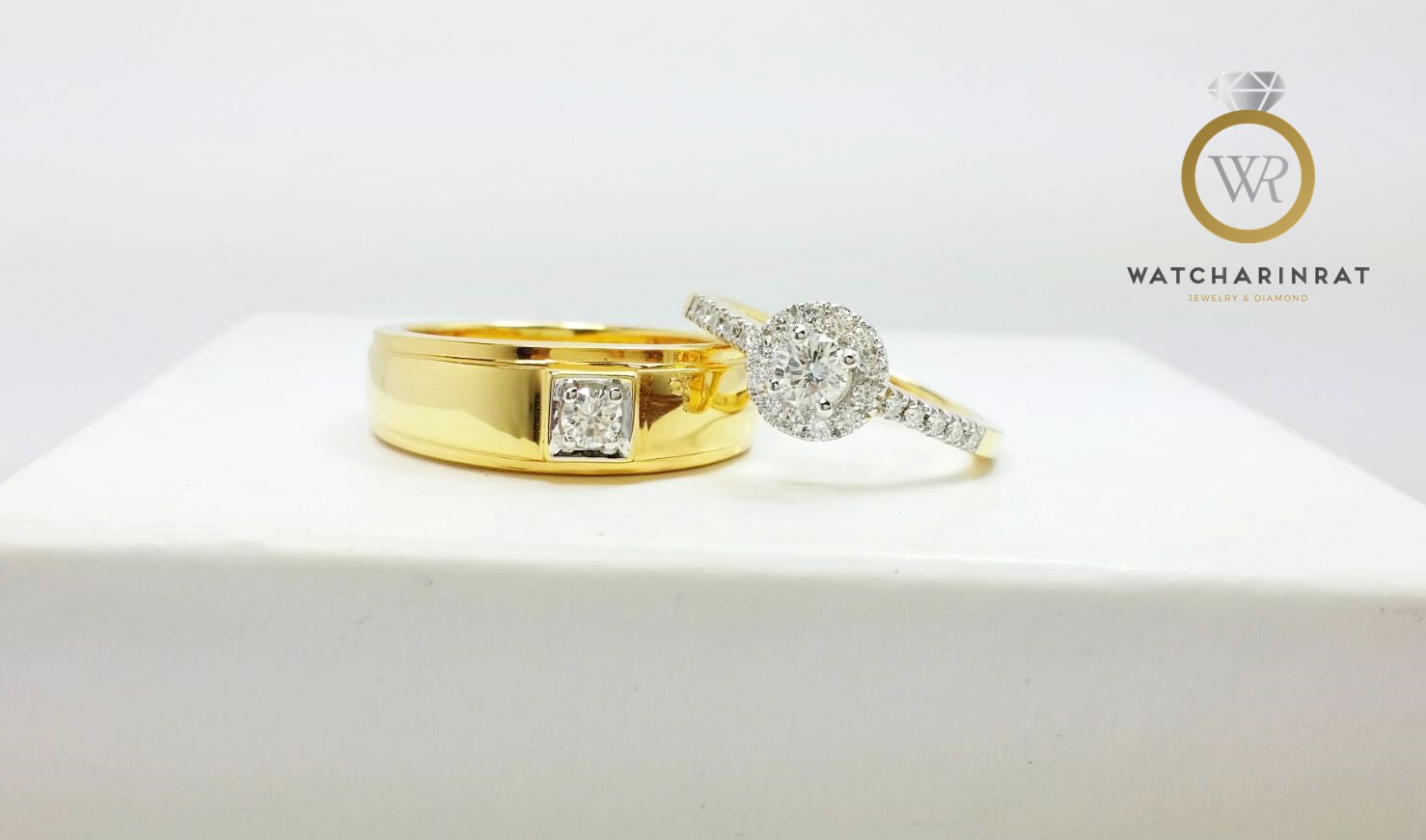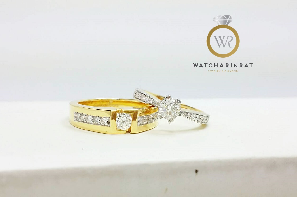แหวนชาย/ ตัวเรือนทองคำแท้ 18K หนัก 7.31 กรัม /ประดับเพชรแท้ 11 เม็ด 0.3 กะรัต (ยอด15ตัง) น้ำ 99/ แหวนหญิง/ ตัวเรือนทองคำแท้ 18K หนัก 2.92 กรัม/ เพชรแท้ 13 เม็ด 0.43 กะรัต (ยอด 30ตัง) น้ำ 99เพิ่มเติม