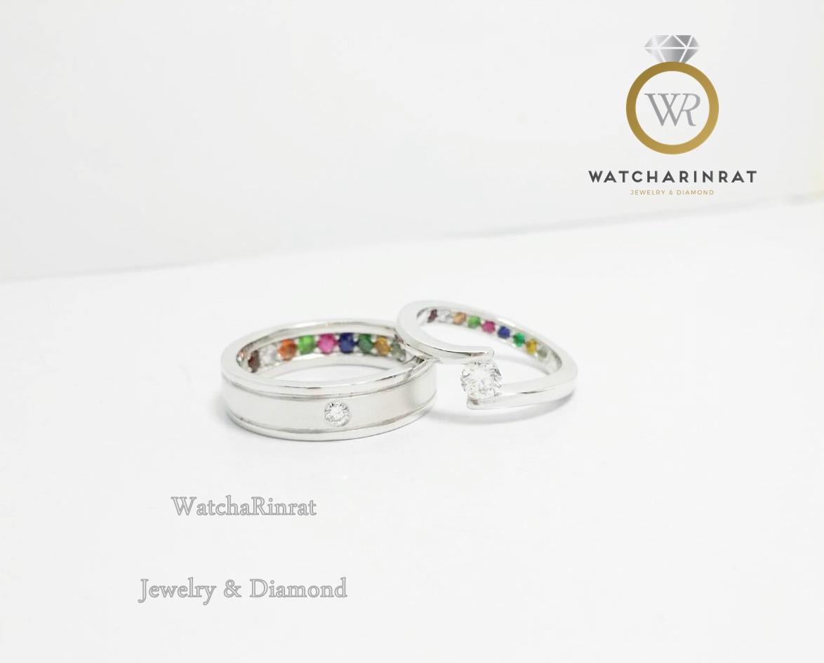 แหวนชาย ทองขาวแพทตินัม (Platinum) แท้ หนัก 10.87 กรัม / ประดับเพชรแท้ 0.05 กะรัต น้ำ 98 / แหวนหญิง เพชรเม็ดใหญ่ๆ เต็มๆ 0.22 กะรัต น้ำ 98/ ตัวแหวนทองขาวแพทตินัม (platinum) หนัก 5.19 กรัม/ ใต้ท้องวงประดับพลอยนพเก้า 9 สี เสริมมงคล/ไซด์แหวนสามารถสั่งทำได้ค่ะเพิ่มเติม