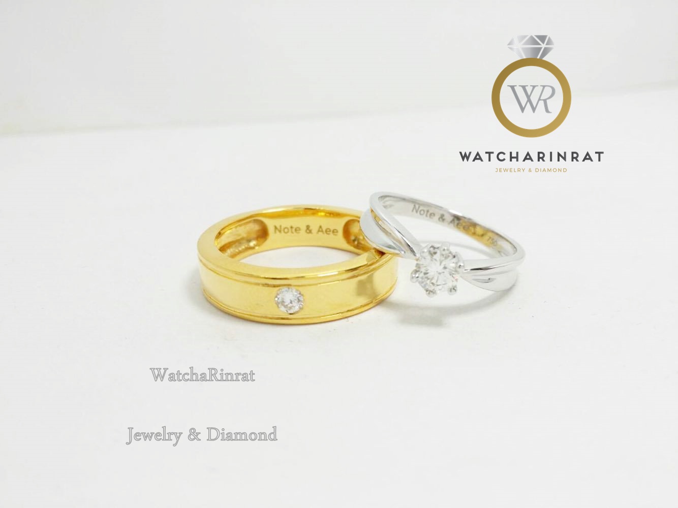 แหวนชาย / ทองคำขาว 18K หนัก 7 กรัม/ ประดับเพชรแท้ 8 ตัง น้ำ 98-99 / แหวนหญิง /ทองคำขาว 18K หนัก 2.7 กรัม /ประดับเพชรแท้ 19 เม็ด หนัก 0.40 กะรัต น้ำ 98-99 เพิ่มเติม