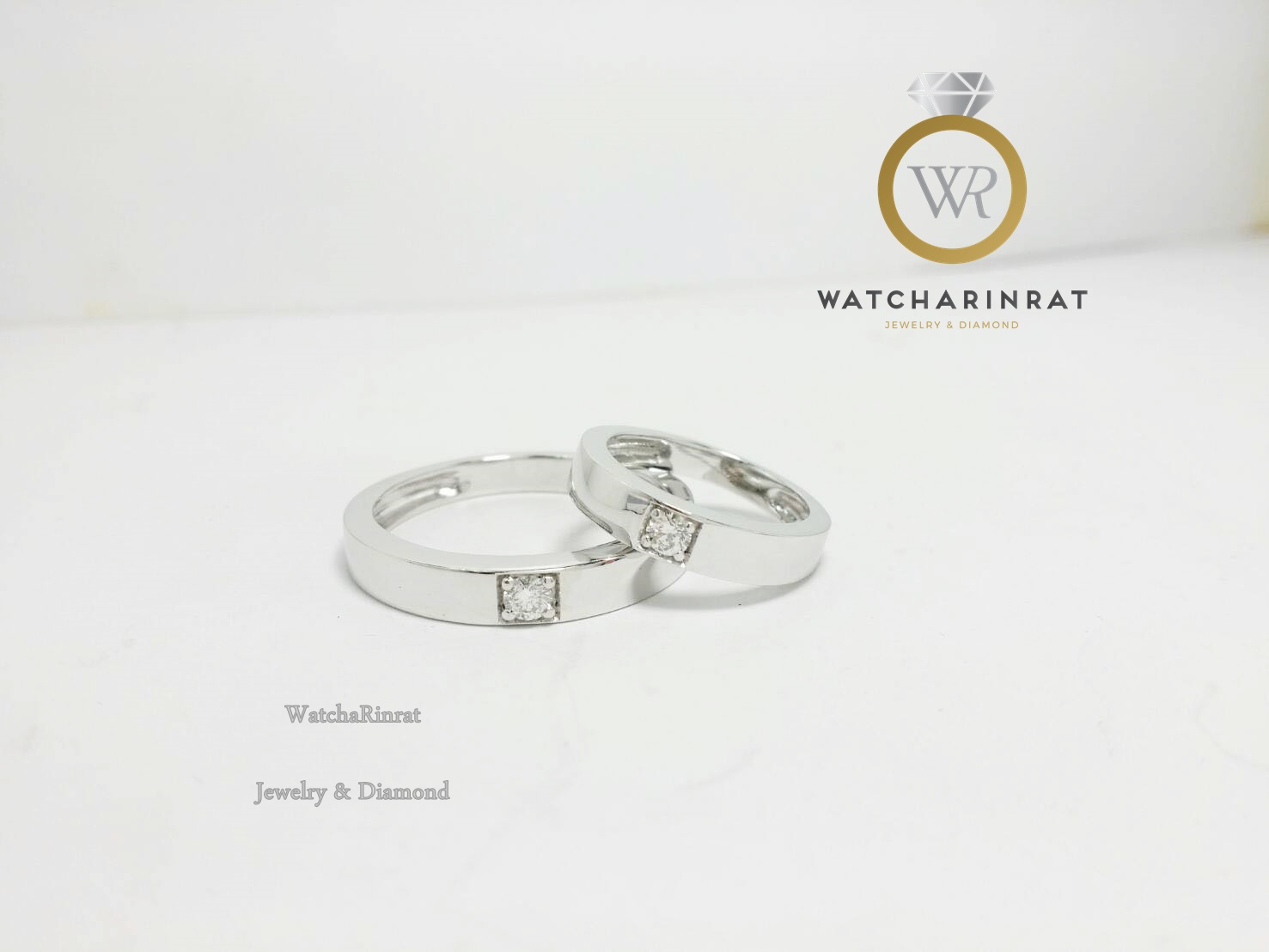แหวนคู่ทรงคลาสสิค ใส่ติดนิ้วได้ตลอด /สื่อถึงความรักที่มั่นคงตลอดไป/แหวนชาย //ตัวเรือนทองขาวแพทตินัม หนัก 5.75 กรัม/แหวนหญิง /ตัวเรือนทองขาวแพทตินัม 6.73 กรัม/ประดับเพชรแท้ 1 เม็ด 0.05 กะรัต น้ำ 99 vvsเพิ่มเติม