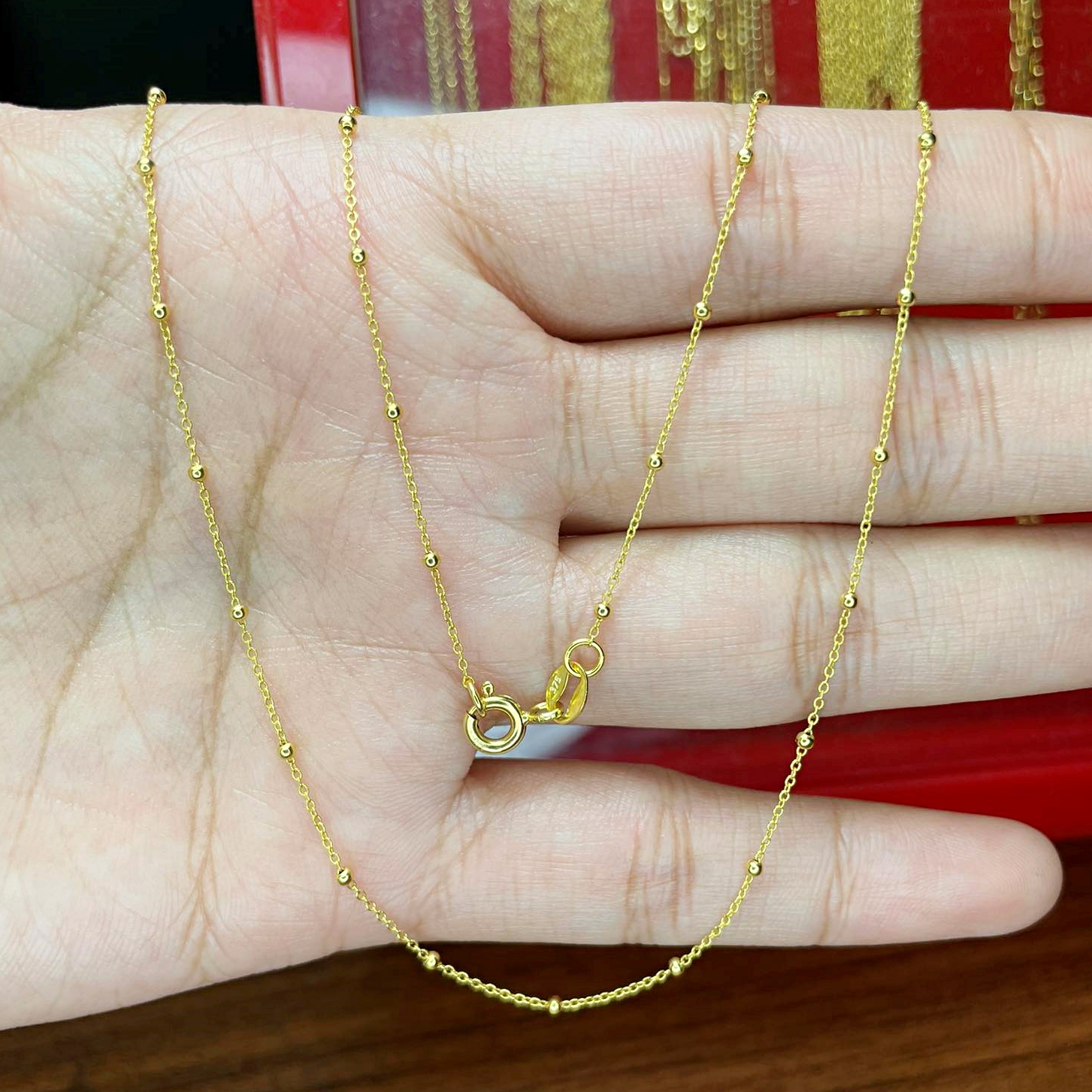 สร้อยคออิตาลี 9K ลายเม็ดทองคั่น -1