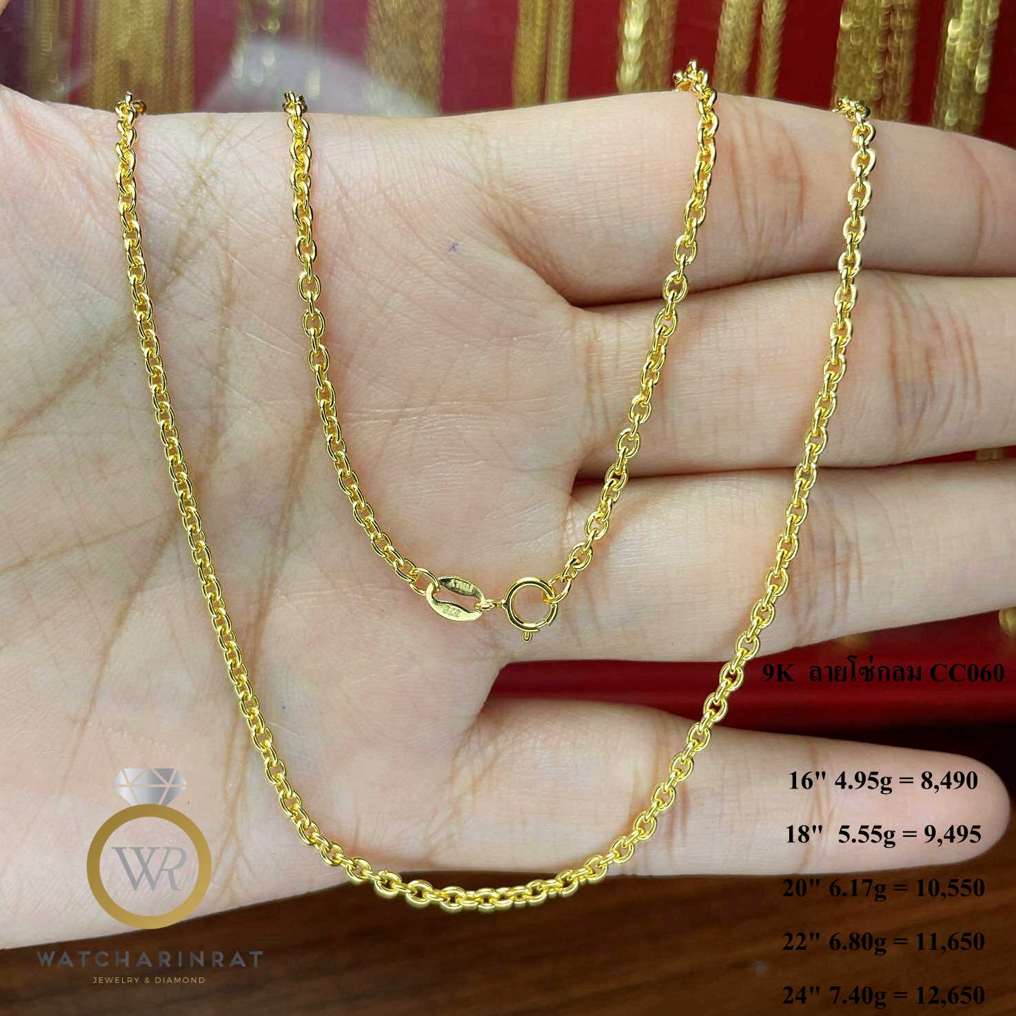 9K ลายคตกิต (CAL060-1) 16" 3.60 g = 5250 18" 4.05 g = 5750 20" 4.60 g = 6550 22" 4.95 g = 7050 24" 5.40 g = 7760เพิ่มเติม