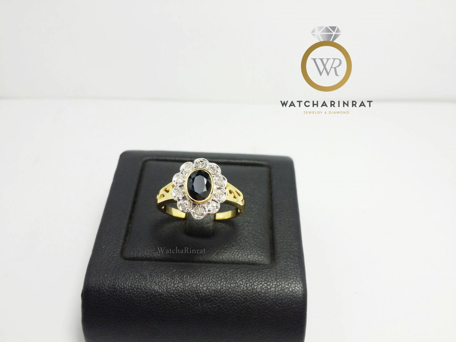 แหวนทองคำแท้ 18K หนัก 3.5 กรัม/ประดับพลอยไพลินแท้ /ล้อมเพชรแท้ 10 เม็ด หนัก 0.2 กะรัต น้ำ 97/ ไซด์แหวนสามารถสั่งทำได้ตามต้องการเพิ่มเติม
