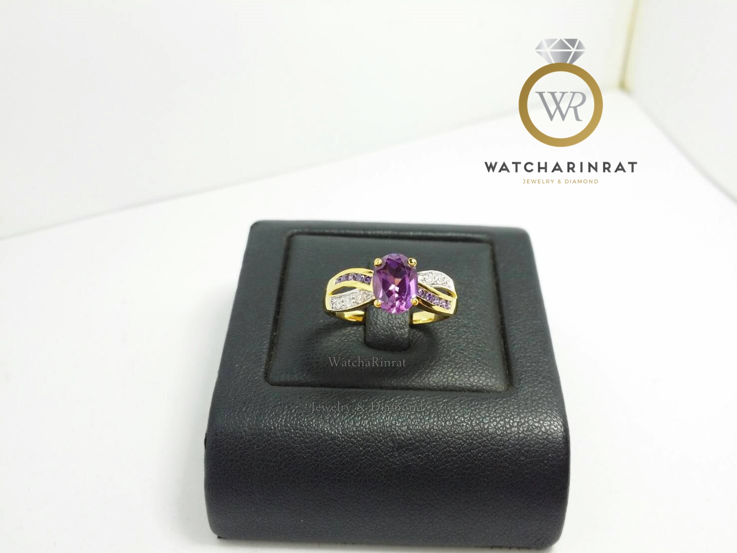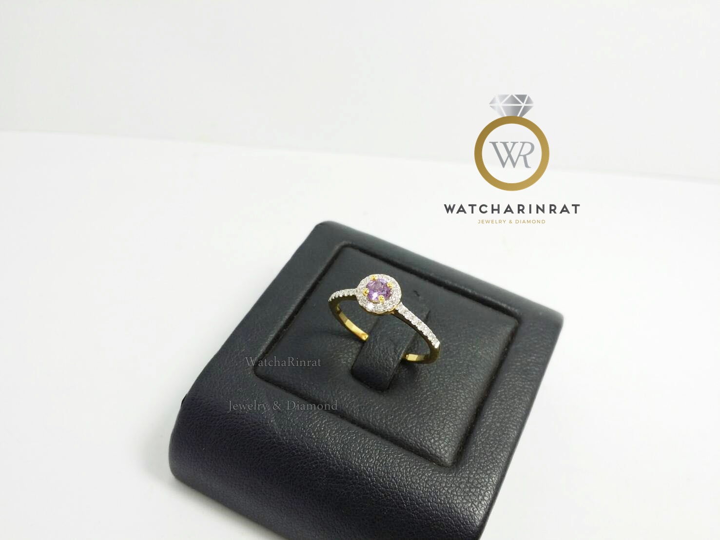 แหวนพลอยล้อมเพชรแบบเล็กๆ น่ารัก เหมาะกับสาวๆ ใส่ติดนิ้วได้ทุกวัน/ ตัวเรือนทองคำแท้ 14K หนัก 1.4 กรัม/ประดับพลอยแท้สีม่วง (เปลี่ยนเป็นสีพลอยที่ถูกโฉลกกับดวงผู้ใส่ได้)/ล้อมเพชรแท้ 26 เม็ด 0.26 กะรัต น้ำ 98/ไซด์แหวน 52 (ทำไซด์ฟรี)เพิ่มเติม