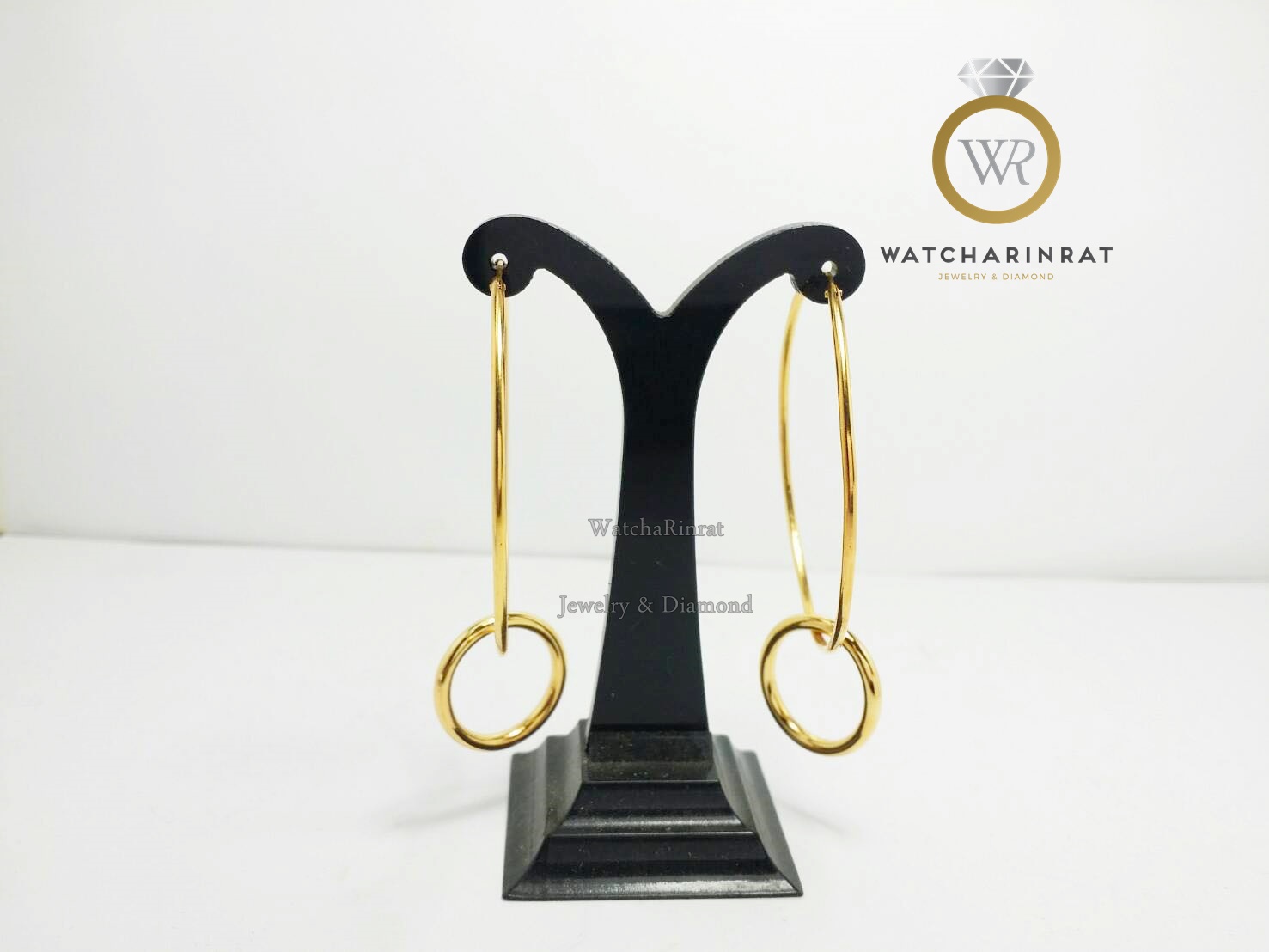 ตุ้มหูทรงห่วง ฝังเพชรแถวเรียบหรู ใส่ติดหูได้ทุกวัน/ ทองคำแท้ 14K หนัก 3.2 กรัม/ประดับเพชรแท้ 16 เม็ด หนัก 0.32 กะรัต น้ำ 97 vs เพิ่มเติม