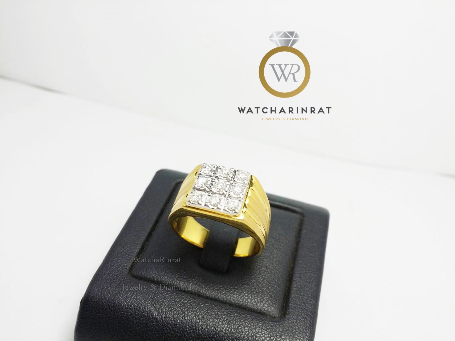 แหวนชายทรงสี่เหลี่ยม ทองคำแท้ 90% หนัก 9.34 กรัม /ประดับเพชรแท้ 9 เม็ด หนัก 0.45 กะรัต น้ำ 97/ ไซด์แหวน 64 (ทำไซด์ฟรี)เพิ่มเติม