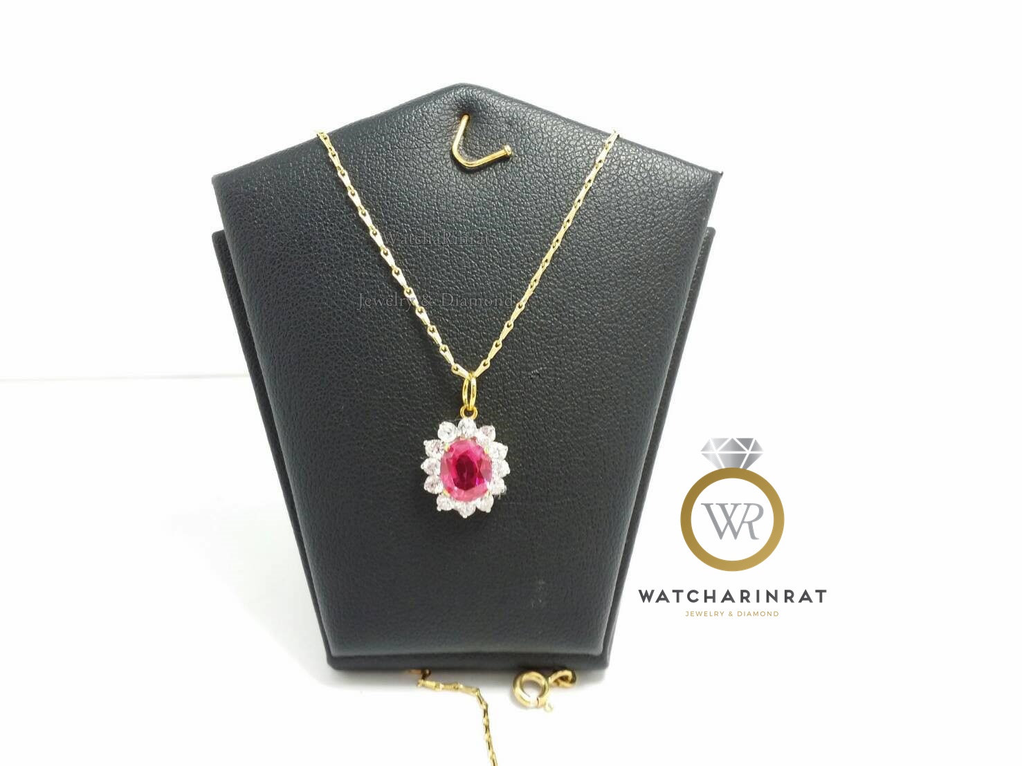 จี้ทองคำแท้ 90% หนัก 1.1 กรัม /ประดับพลอยสี ล้อมด้วยเพชรสวิสเกรดเอ/ พร้อมสร้อยทองคำแท้ อิตาลี 18K หนัก 1.9 กรัม/ความยาว 16 นิ้ว เพิ่มเติม