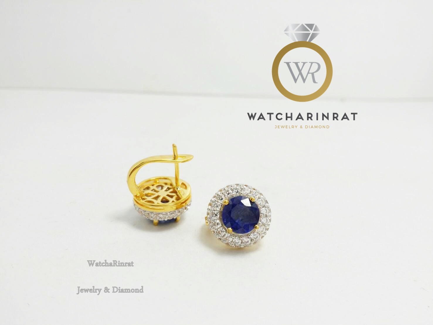 ตุ้มหูทองคำแท้ 90% หนัก 6.78 กรัม/ ไพลินแท้ ล้อมเพชรแท้ 76 เม็ด หนัก 1.15 กะรัต น้ำ 97/ ขาหลังแบบโอปาก้า แข็งแรงแน่นหนาเพิ่มเติม