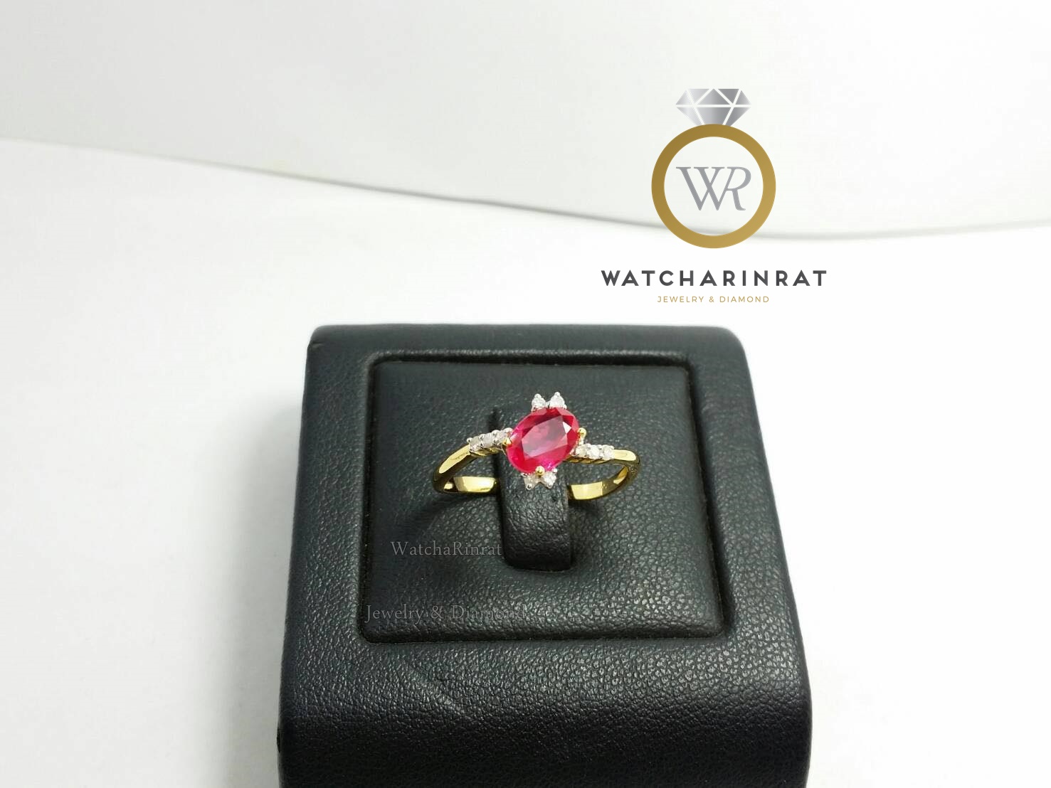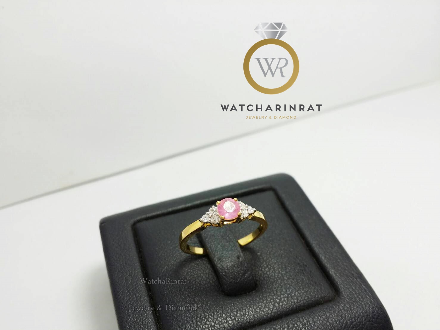 แหวนทับทิมแท้ น้ำงาม สวยใส สีชมพูเข้ม/ตัวเรือนทองคำแท้ 9K หนัก 1.46 กรัม/เพชรแท้ เหลี่ยมกุหลาบ 10 เม็ด 0.1 กะรัต/ไซด์แหวน 55 เพิ่มเติม