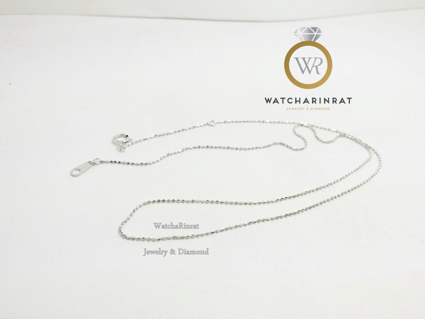 สร้อยคอทองคำขาว 14K หนัก 1.88 กรัม /ลายประคำเล็ก/ความยาว 16 นิ้ว/ปรับความยาวได้ 2 ระดับ/พร้อมจี้พลอยมูนสโตนรูปหัวใจสุดน่ารักเพิ่มเติม