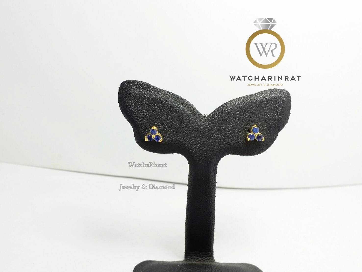 ตุ้มหูทรงดอกไม้สามเหลี่ยม/ประดับพลอยไพลินแท้ 6 เม็ด/ตัวเรือนทองคำแท้ 9K หนัก 0.88 กรัมเพิ่มเติม