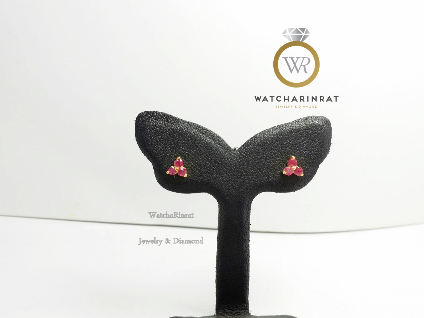 ตุ้มหูทรงดอกไม้สามเหลี่ยม/ประดับพลอยทับทิมแท้ 6 เม็ด/ตัวเรือนทองคำแท้ 9K หนัก 0.88 กรัมเพิ่มเติม