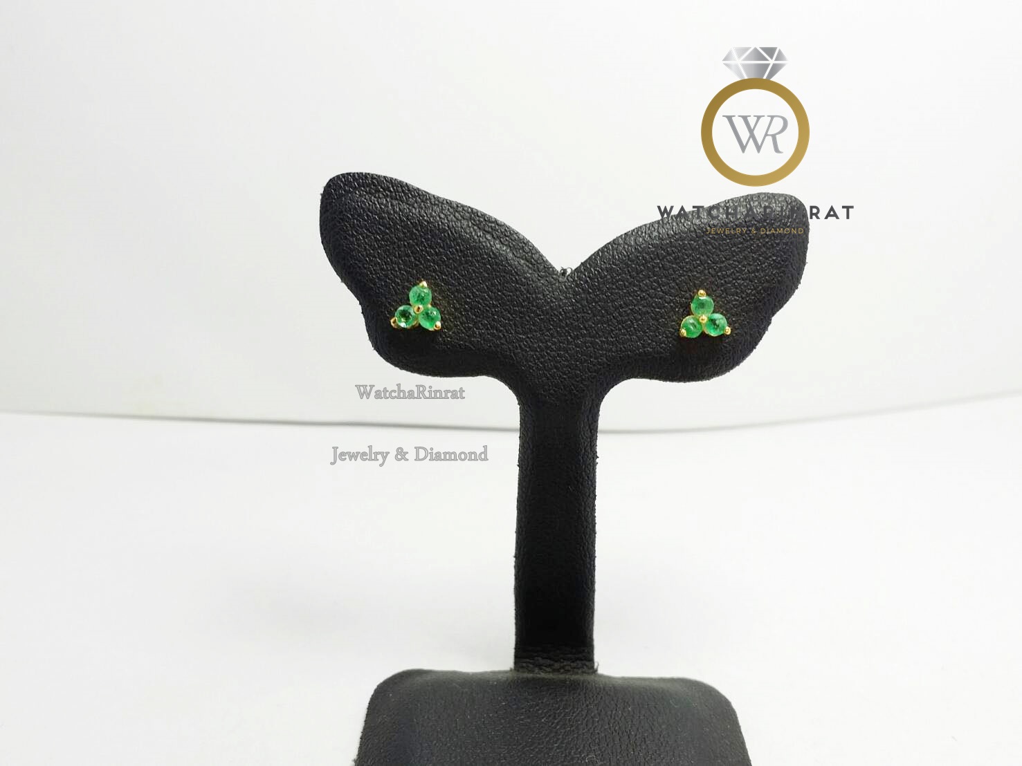 ตุ้มหูทรงดอกไม้สามเหลี่ยม/ประดับพลอยมรกตแท้ 6 เม็ด/ตัวเรือนทองคำแท้ 9K หนัก 0.88 กรัมเพิ่มเติม