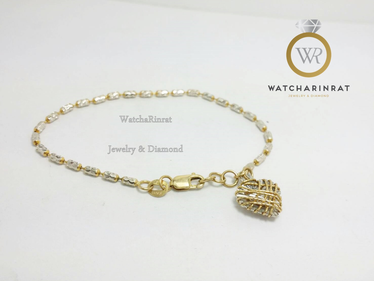 สร้อยข้อมืออิตาลี 18K ลายสองกษัตริย์ หนัก 3.16 กรัม/มีตุ้งติ้งหัวใจ / ความยาว 5.5-6 นิ้ว (ปรับความยาวได้ 3 ระดับ)เพิ่มเติม