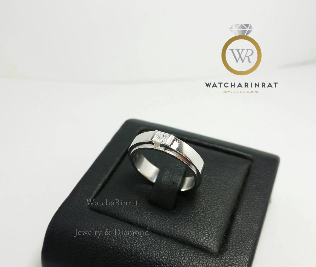 แหวนเพชรเม็ดเดียว ทรงสี่เหลี่ยม สวยเรียบหรู ใส่ได้ทั้งชายและหญิง/ ทองคำขาว 9K หนัก 4.88 กรัม / ประดับเพชรแท้ สี่เหลี่ยมปริ้นเซส หนัก 0.15 กะรัต น้ำ 97 เพิ่มเติม