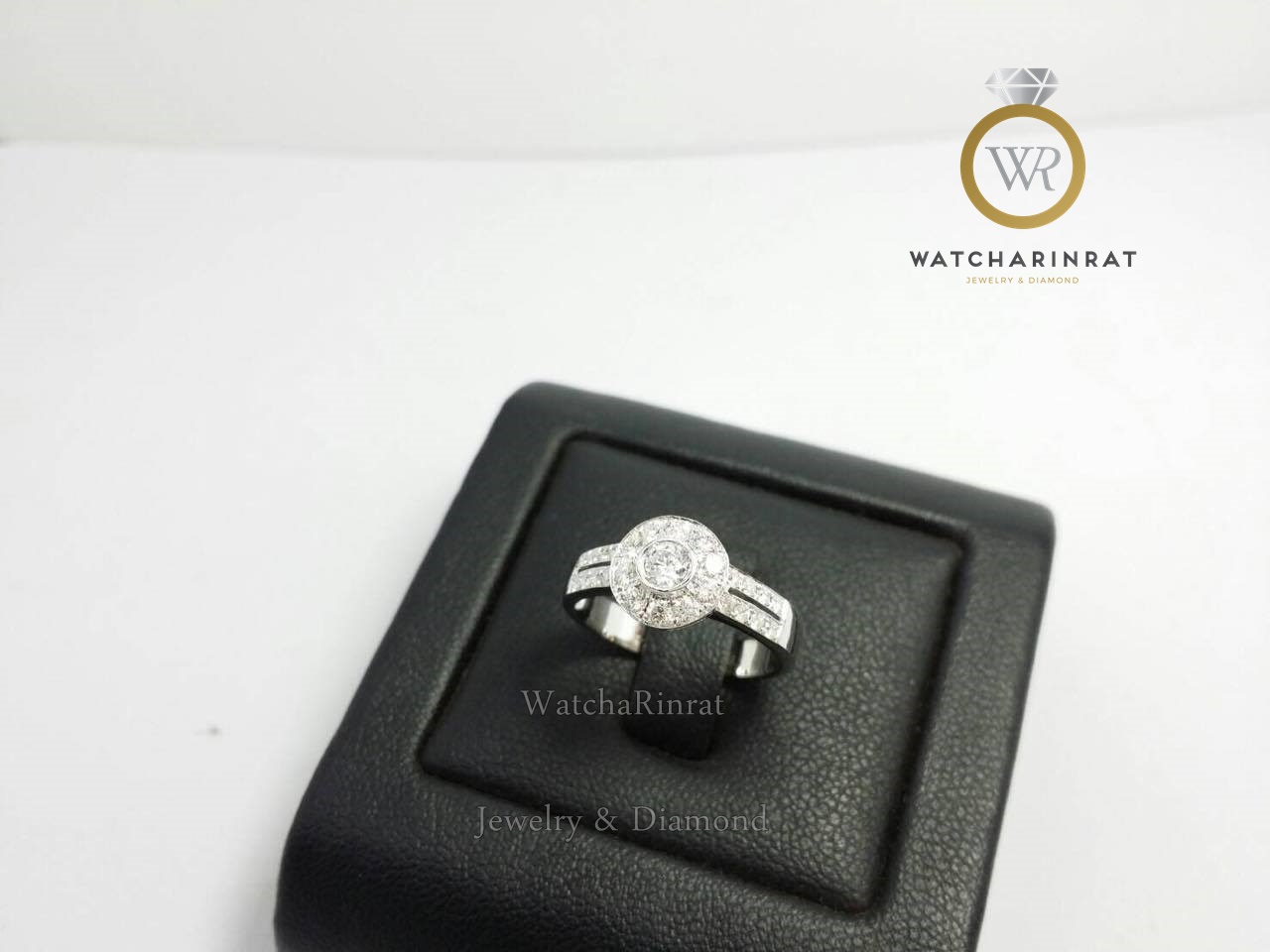 แหวนเพชรล้อมเพชร /ตัวเรือนทองคำขาว 18K หนัก 2.18 กรัม/ ประดับเพชรแท้ 15 ตัง ล้อม 1 ตัง 26 เม็ด รวม 0.46 กะรัต น้ำ 98/ สามารถสั่งทำได้ทุกไซด์เพิ่มเติม