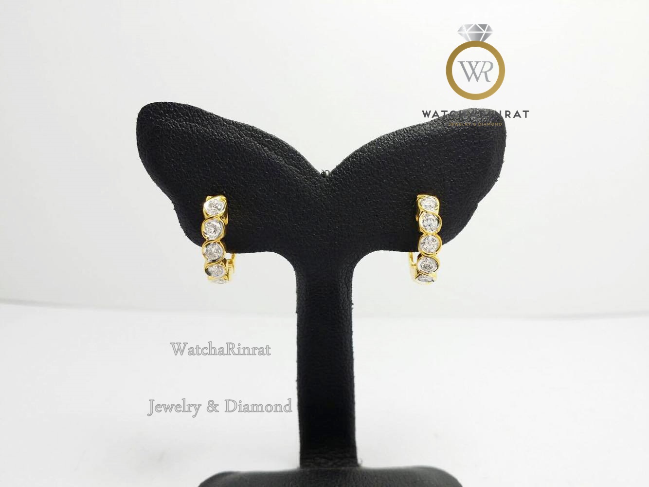 ตุ้มหูเพชรแถว น้ารักสวยหวาน แบบห่วงกลม แน่นหนา ไม่หลุดง่าย ใส่สบายได้ทุกวัน/ ทองคำแท้ 18K หนัก 2.94 กรัม/ เพชรแท้ 10 เม็ด 0.35 กะรัต เพิ่มเติม