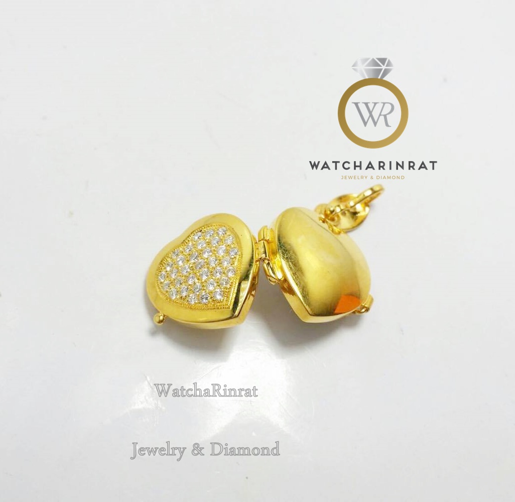 ล็อคเก็ต สำหรับใส่รูปภาพ เปิด-ปิดได้ ตัวล็อคแน่นหนา โดนน้ำได้ /รูปหัวใจ ทองคำแท้ 90% หนัก 2 สลึง/ ประดับเพชรแท้ 37 เม็ด 0.56 กะรัต น้ำ 97/ บริการอัดรูปใส่ให้ฟรีเพิ่มเติม