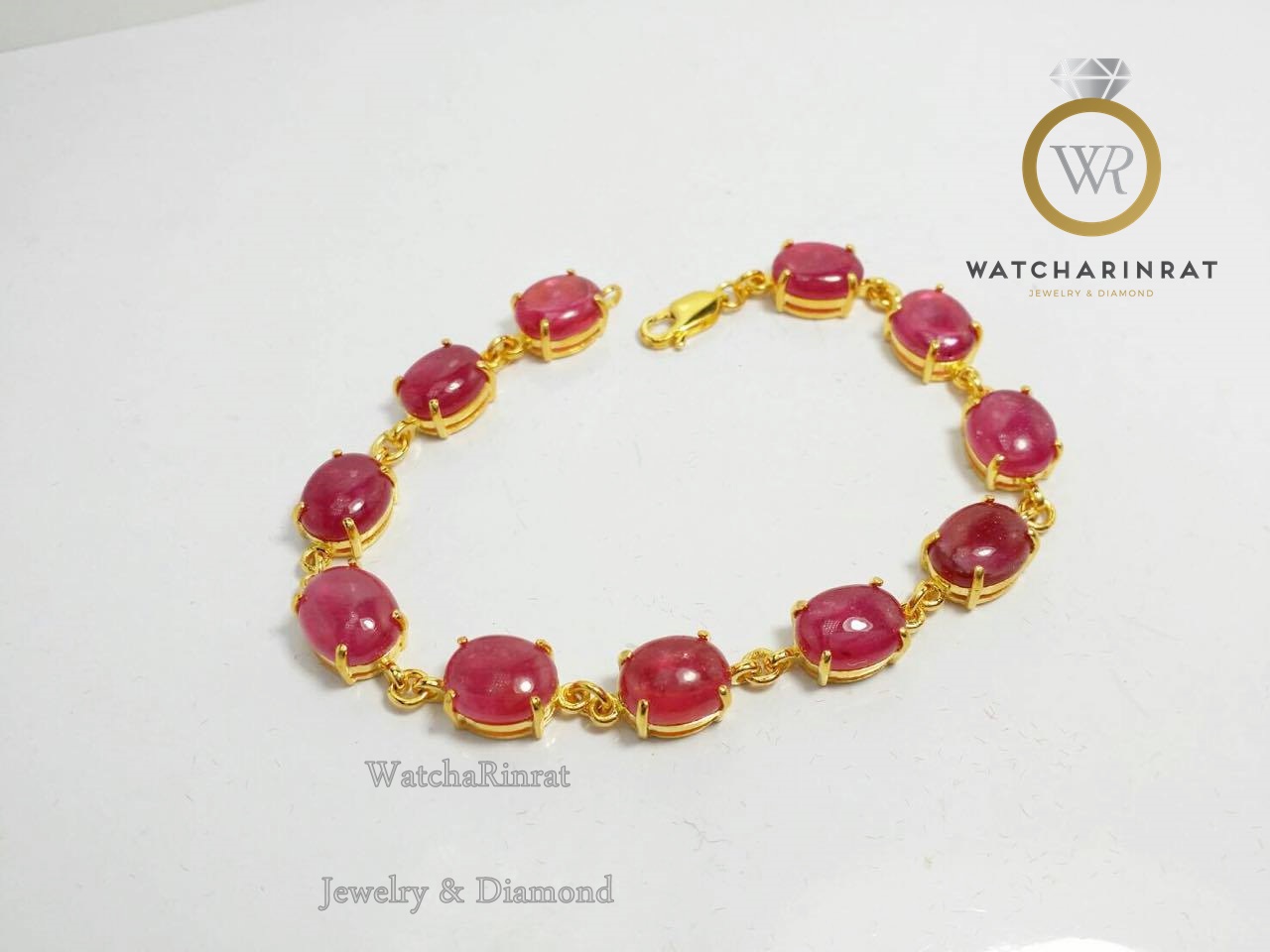 สร้อยข้อมือทองคำแท้ 9K หนัก 8.02 กรัม/ ประดับพลอยทับทิมแท้ สีชมพู เม็ดใหญ่ 11 เม็ด 32 กะรัต/ ความยาว 18 ซม. (สามารถสั่งทำความยาวได้)เพิ่มเติม