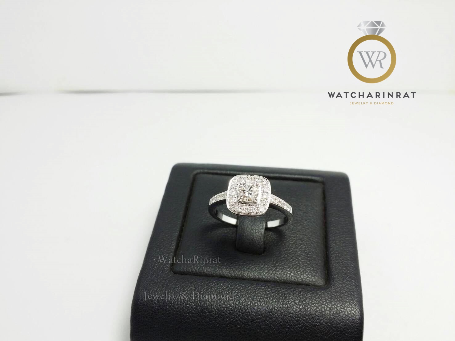แหวนเพชรล้อมเพชร ทรงสี่เหลี่ยมสวยหรู /ทองคำขาว 18K หนัก 3.03 กรัม/ประดับเพชรแท้ เม็ดกลาง 0.30 กะรัต และเพชรรวม 27 เม็ด หนัก 0.60 กะรัต น้ำ 97/ ไซด์แหวนสามารถสั่งทำได้ตามต้องการเพิ่มเติม