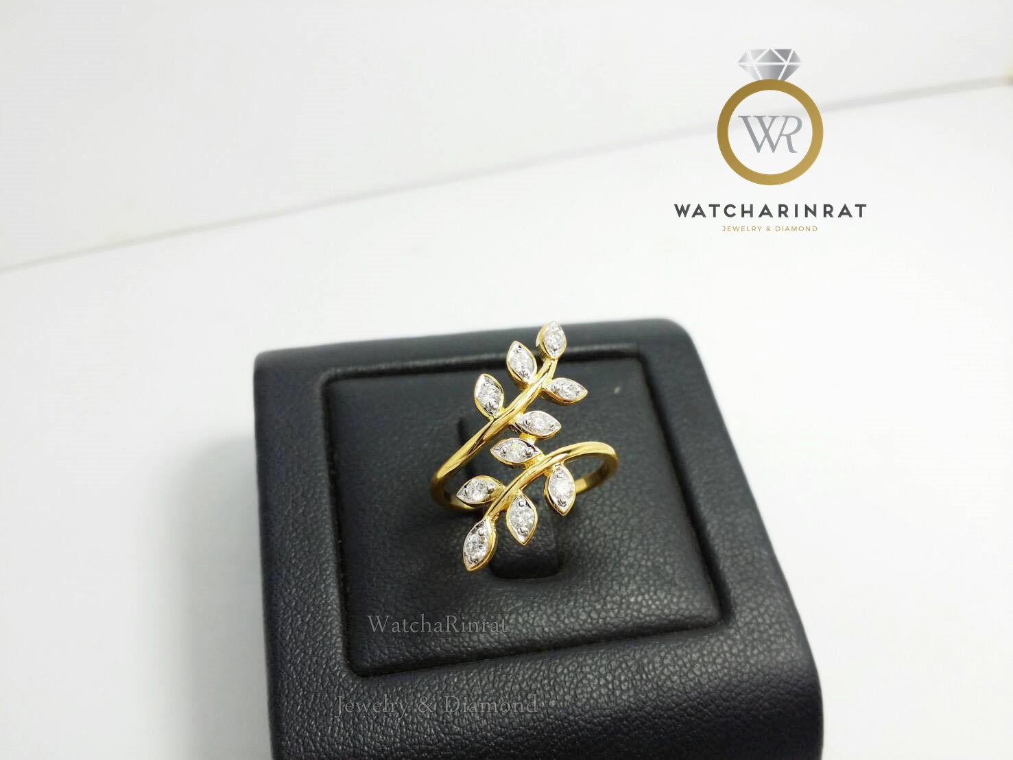 แหวนใบมะกอก เชื่อว่าช่วยนำโชคดีมาสู่ผู้สวมใส่/ ทองคำแท้ 9K หนัก 2 กรัม/ ประดับเพชรแท้ 10 เม็ด หนัก 0.30 กะรัต น้ำ 97เพิ่มเติม