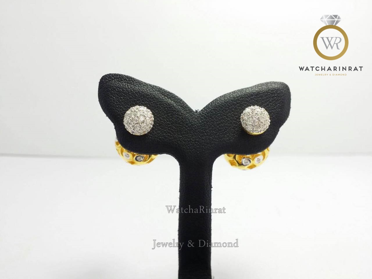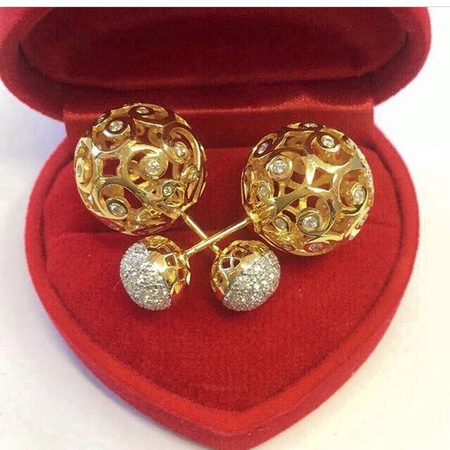 ตุ้มหูออกแบบพิเศษ สวยหรู ทองแท้ 9K หนัก 4.6 กรัม / ประดับเพชรแท้ เหลี่ยมเบลเยี่ยม 130 เม็ด 0.42 กะรัต / แบบเกลียวหมุน แน่นหนาแข็งแรง สวยได้ทั้งด้านหน้า และด้านหลังเพิ่มเติม