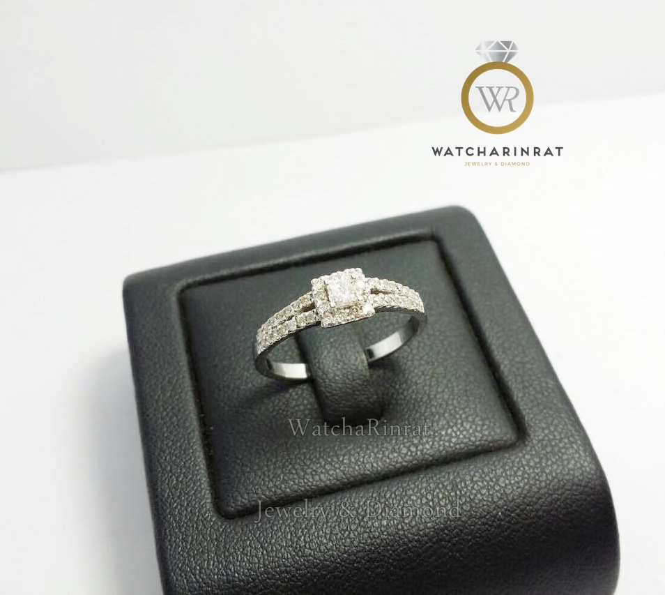 แหวนเพชรล้อมเพชร สวยหรู ใส่ได้ทุกโอกาส/ แหวนทองคำขาว 9K หนัก 1.82 กรัม/ ประดับเพชรรวม 0.45 กะรัต /เพชรยอด ทรงสี่เหลี่ยมปริ้นเซส หนัก 0.15 กะรัต/ ล้อมเพชรกลม 40 เม็ด 0.3 กะรัต/ ไซด์แหวนสามารถสั่งทำได้ค่ะเพิ่มเติม