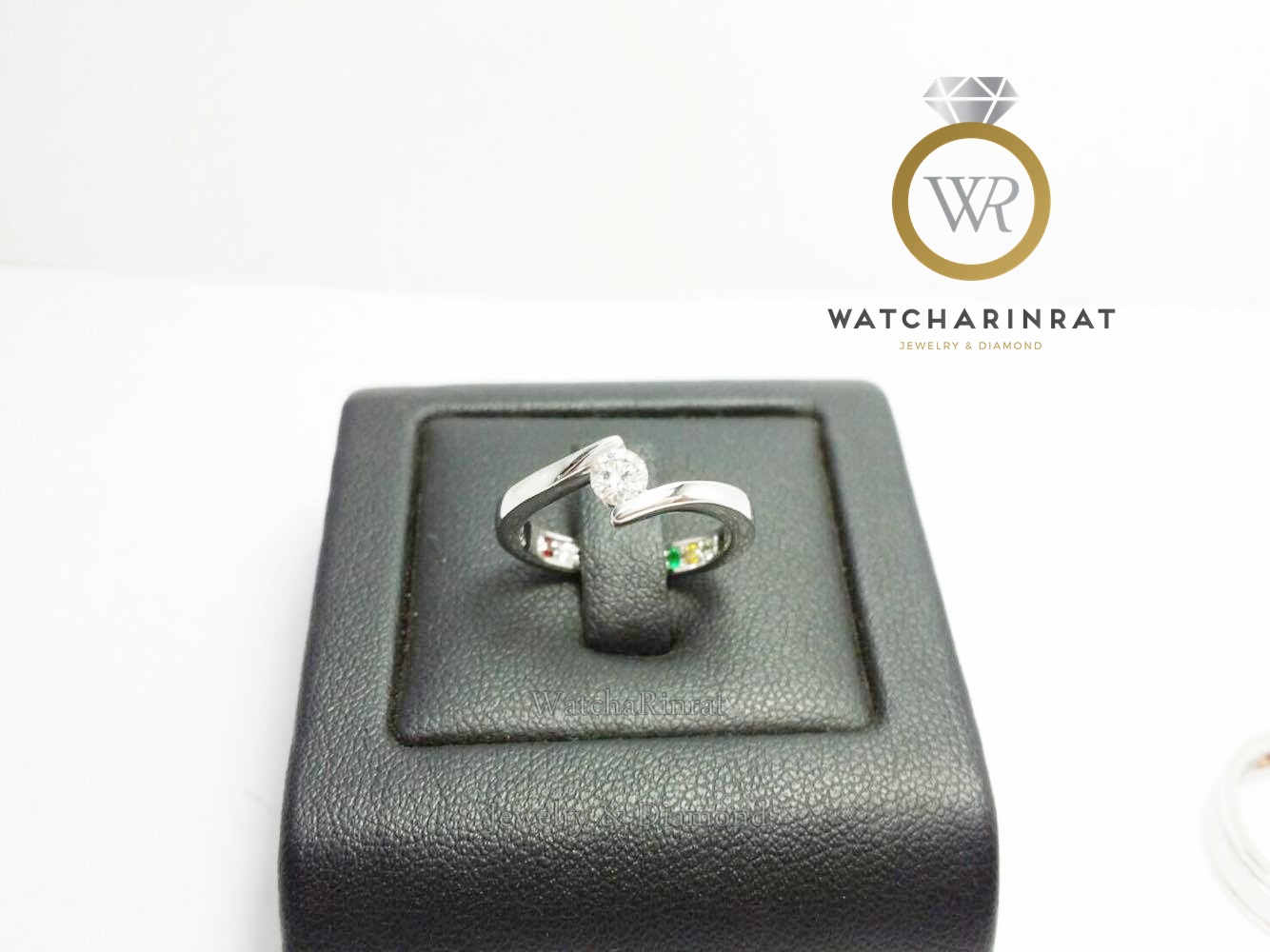 แหวนเพชรสวยหวาน เม็ดใหญ่ๆ เต็มๆ 0.22 กะรัต น้ำ 98/ ตัวแหวนทองขาวแพทตินัม (platinum) หนัก 5.19 กรัม / ใต้ท้องวงประดับพลอยนพเก้า 9 สี เสริมมงคล / ไซด์แหวนสามารถสั่งทำได้เพิ่มเติม