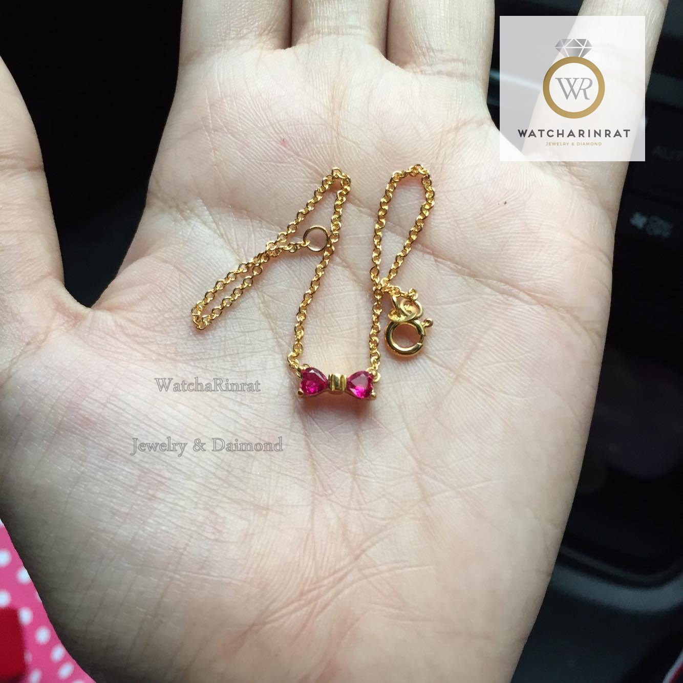 สร้อยข้อมือ ทับทิมแท้ รูปหัวใจ 2 เม็ด ประกอบเป็นโบว์ น่ารักมากๆ / ทองคำแท้ 9K หนัก 1.68 กรัม / ความยาว 7.5 นิ้ว (ตัดไซด์ฟรีค่ะ)เพิ่มเติม