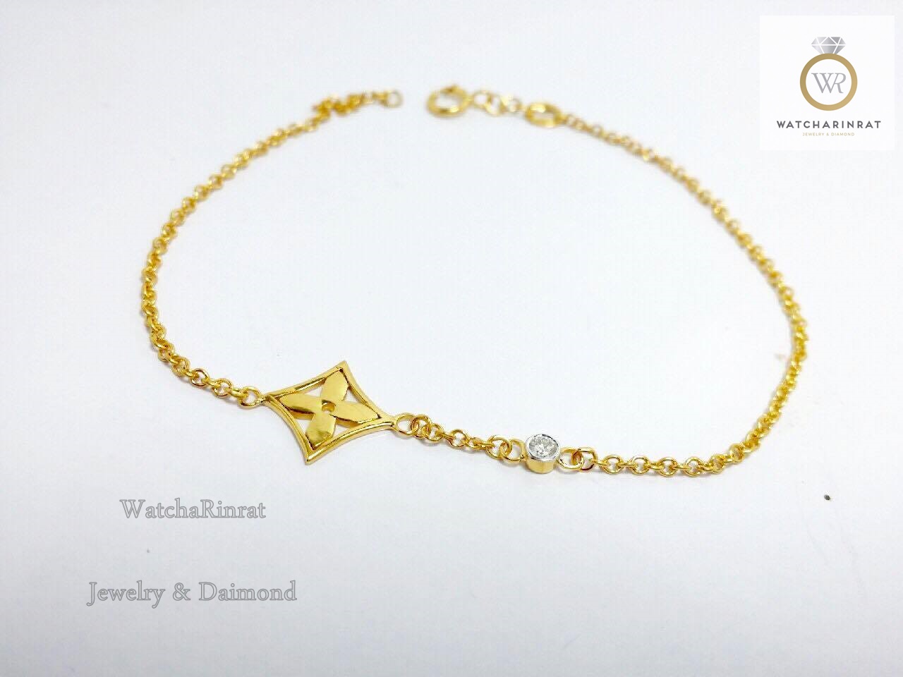สร้อยข้อมือลายหลุยส์ ประดับเพชรแท้ เหลี่ยมเบลเยี่ยม 1 เม็ด 0.05 กะรัต / ทองคำแท้ 9K หนัก 1.7 กรัม / ความยาว 7 นิ้วเพิ่มเติม