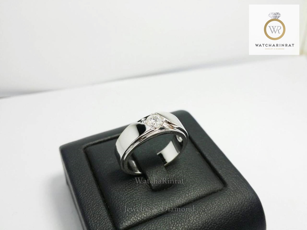 แหวนทองคำขาว 18K / เพชร น้ำ 100 / แหวนชาย 0.30 กะรัต/ แหวนหญิงเพชรรวม 0.70 กะรัตเพิ่มเติม