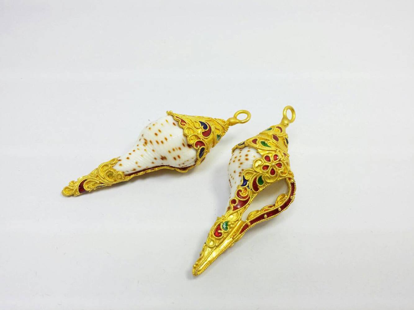 จี้หอยสังข์หุ้มทองแท้ 99% หนัก กว่า 2 สลึง /ลงยาสีสวยงามทนทาน / งานขึ้นมือโดยช่างทองโบราณเพิ่มเติม