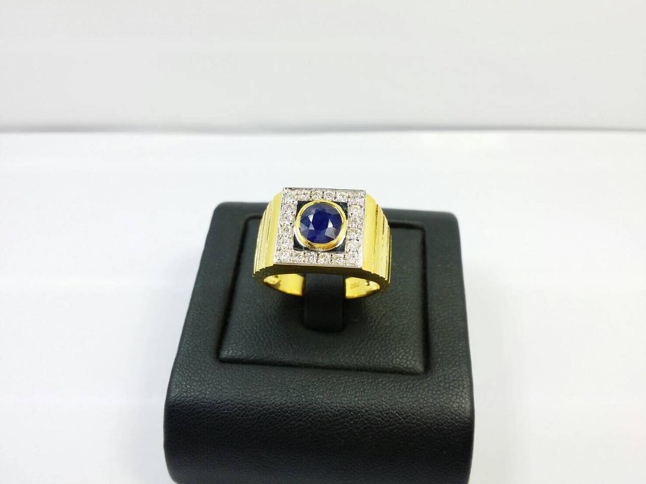 แหวนทองคำแท้ 18K หนัก 2 สลึง / ยอดประดับพลอยไพลินแท้ พลอยประจำเดือนผู้ที่เกิดเดือนกันยายน / ล้อมเพชรแท้ น้ำขาวสาย ไม่มีตำหนิ 20 เม็ด 0.42 กะรัต เพิ่มเติม