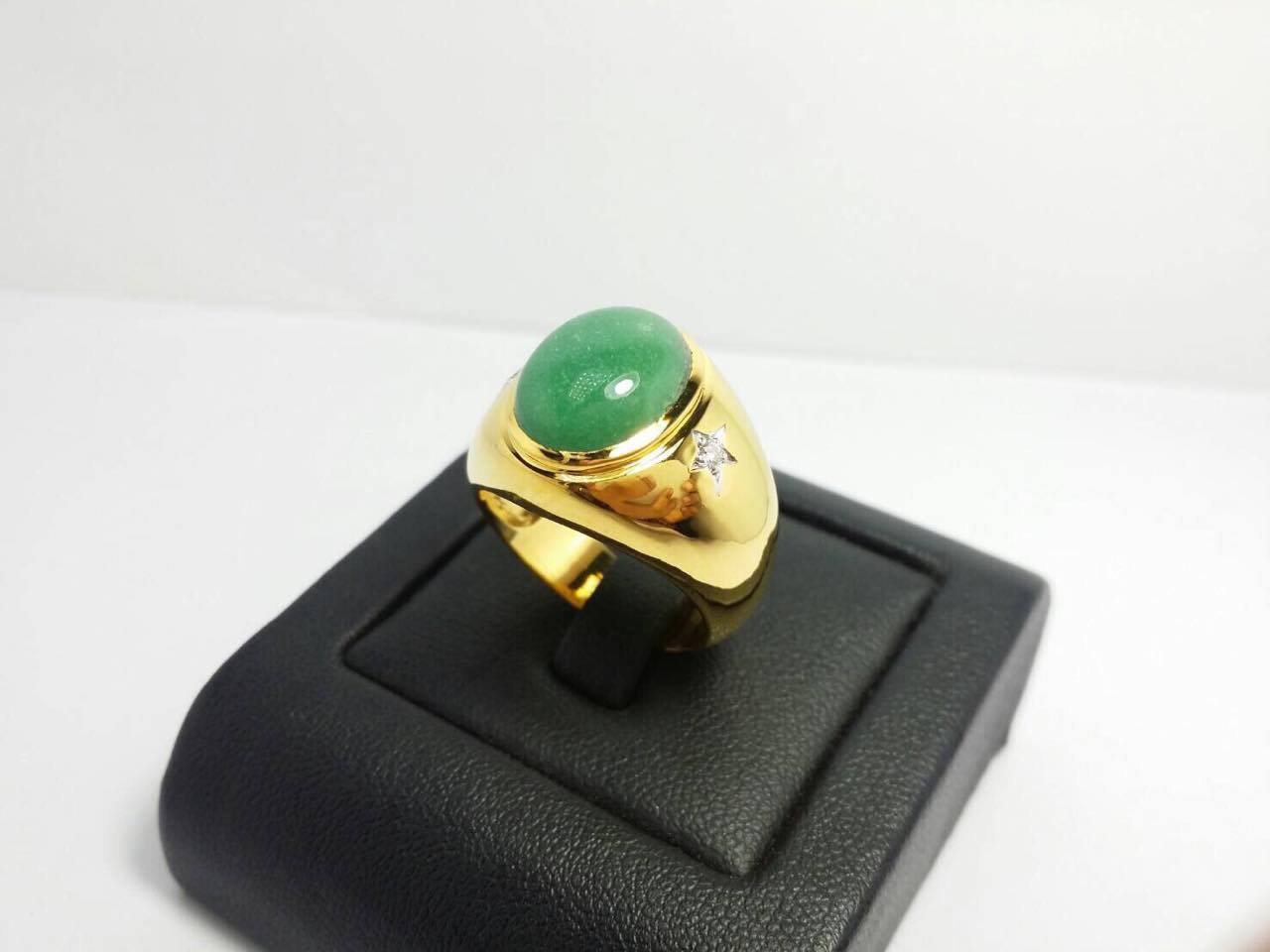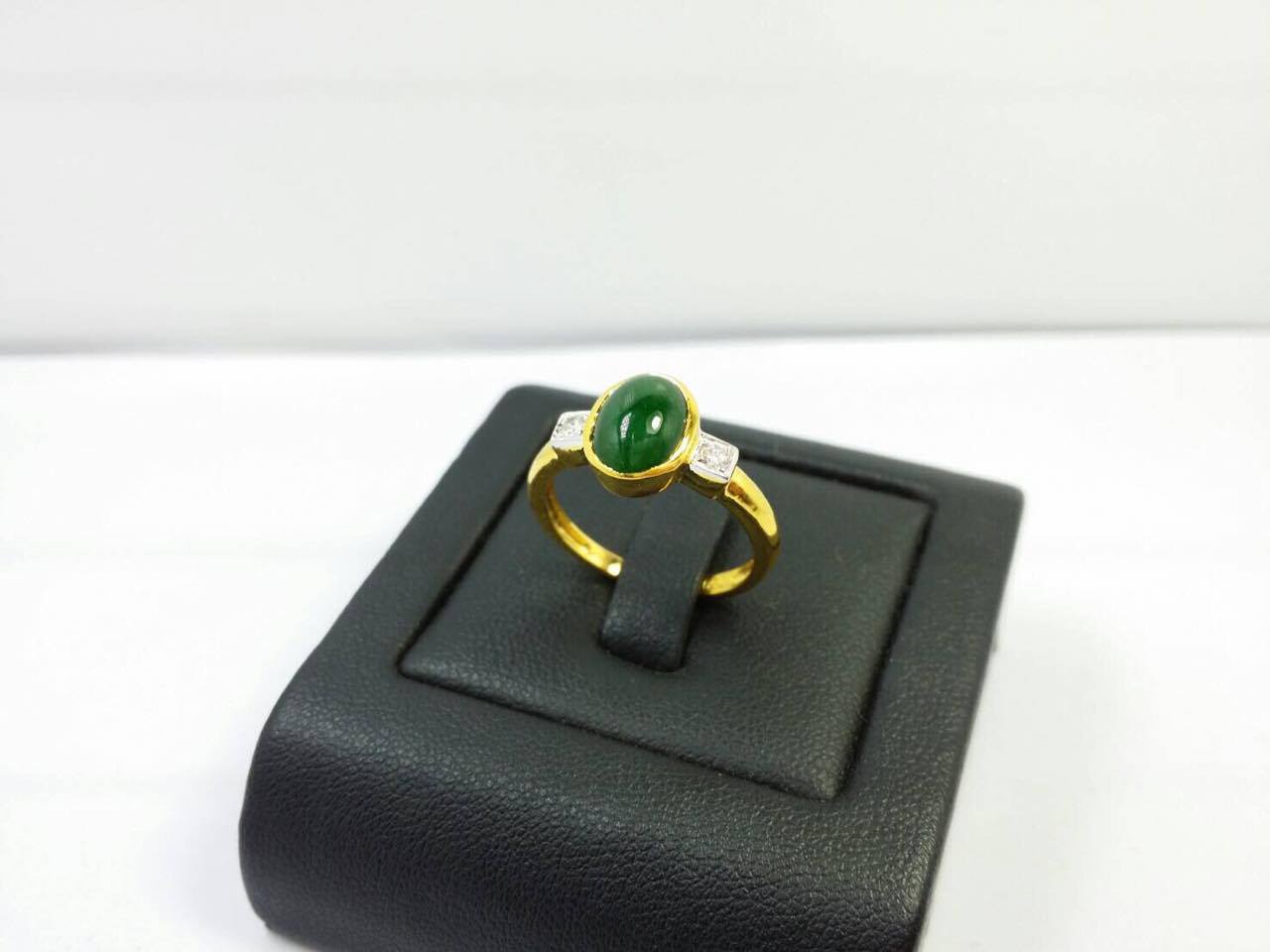 แหวนทองคำแท้ 18K หนัก 3.97 กรัม / ประดับหยกแท้ สีเขียวธรรมชาติ เนื้องาม หนึ่งในอัญมณีหายาก ชาวจีนนับถือให้เป็นเจ้าแห่งความอุดมสมบูรณ์ ช่วยให้ผู้สวมใส่เจริญรุ่งเรือง เงินทองมากมาย สุขภาพแข็งแรง และขจัดเพศภัยต่างๆ / ด้านข้างประดับเพชรแท้ เหลี่ยมเบลเยี่ยม 2 เม็ด 0.08 กะรัต น้ำ 98-99 / ไซร์ 53เพิ่มเติม