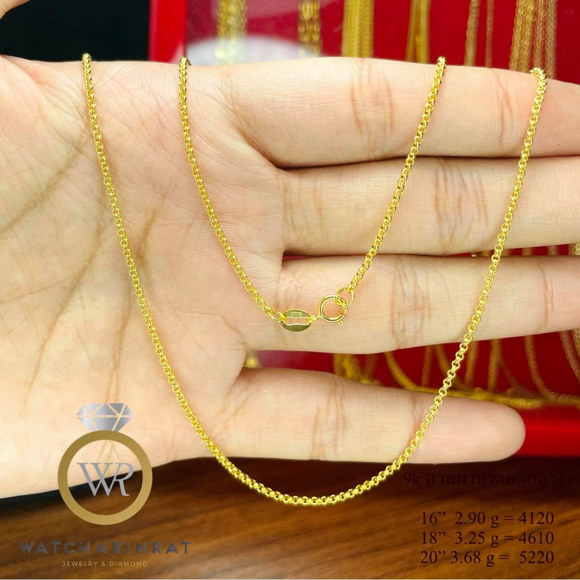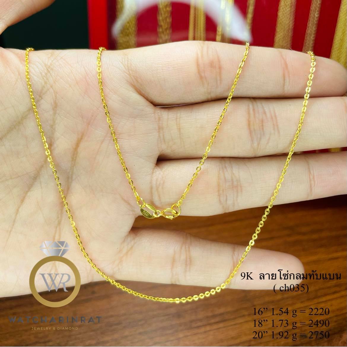สร้อยคอทองแท้ 9K ลายโซ่กลมทับแบน ยาว 16 นิ้ว หนัก 1.54 กรัม ราคา 2,220 บาท ยาว 18 นิ้ว หนัก 1.73 กรัม ราคา 2,490 บาท ยาว 20 นิ้ว หนัก 1.92 กรัม ราคา 2,750 บาทเพิ่มเติม