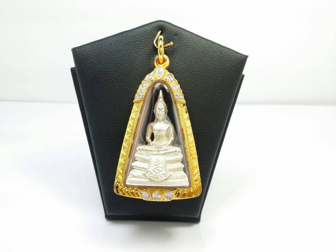 แหนบหรือตัวหนีบห้อยพระ สวยหรู ลายอุณาโลม อักขระศักดิ์สิทธิ์ ทำจากทองคำแท้ 18K หนัก 4.58 กรัม / ประดับเพชรแท้ ที่อุณาโลม 16 เม็ด 0.08 กะรัต น้ำ 97 / และพลอยไพลินแท้ 1 เม็ด ช่วยเสริมโชคลาภเงินทองเพิ่มเติม