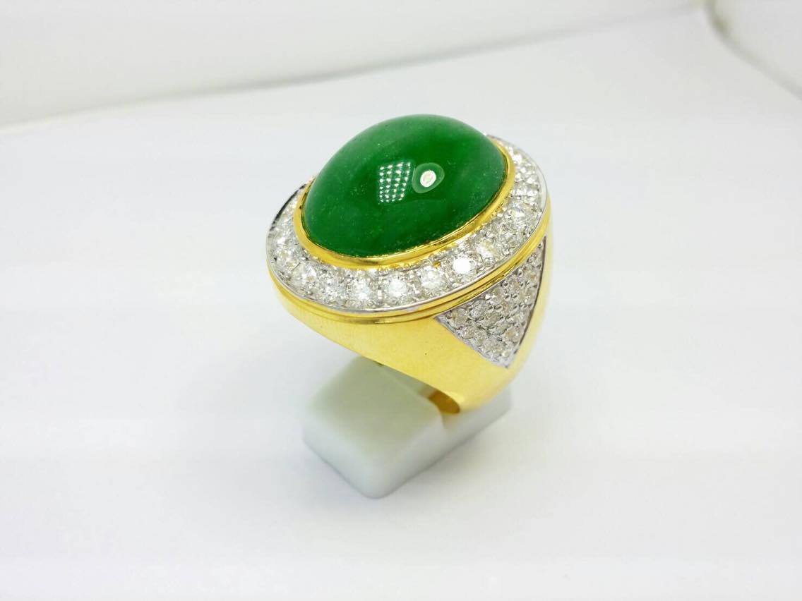 แหวนทองคำแท้ 90% หนัก 2 บาท / หัวหยกพม่าแท้ / ล้อมเพชรแท้ น้ำ 98-99 จำนวน 42 เม็ด หนักกว่า 3 กะรัต/เพิ่มเติม
