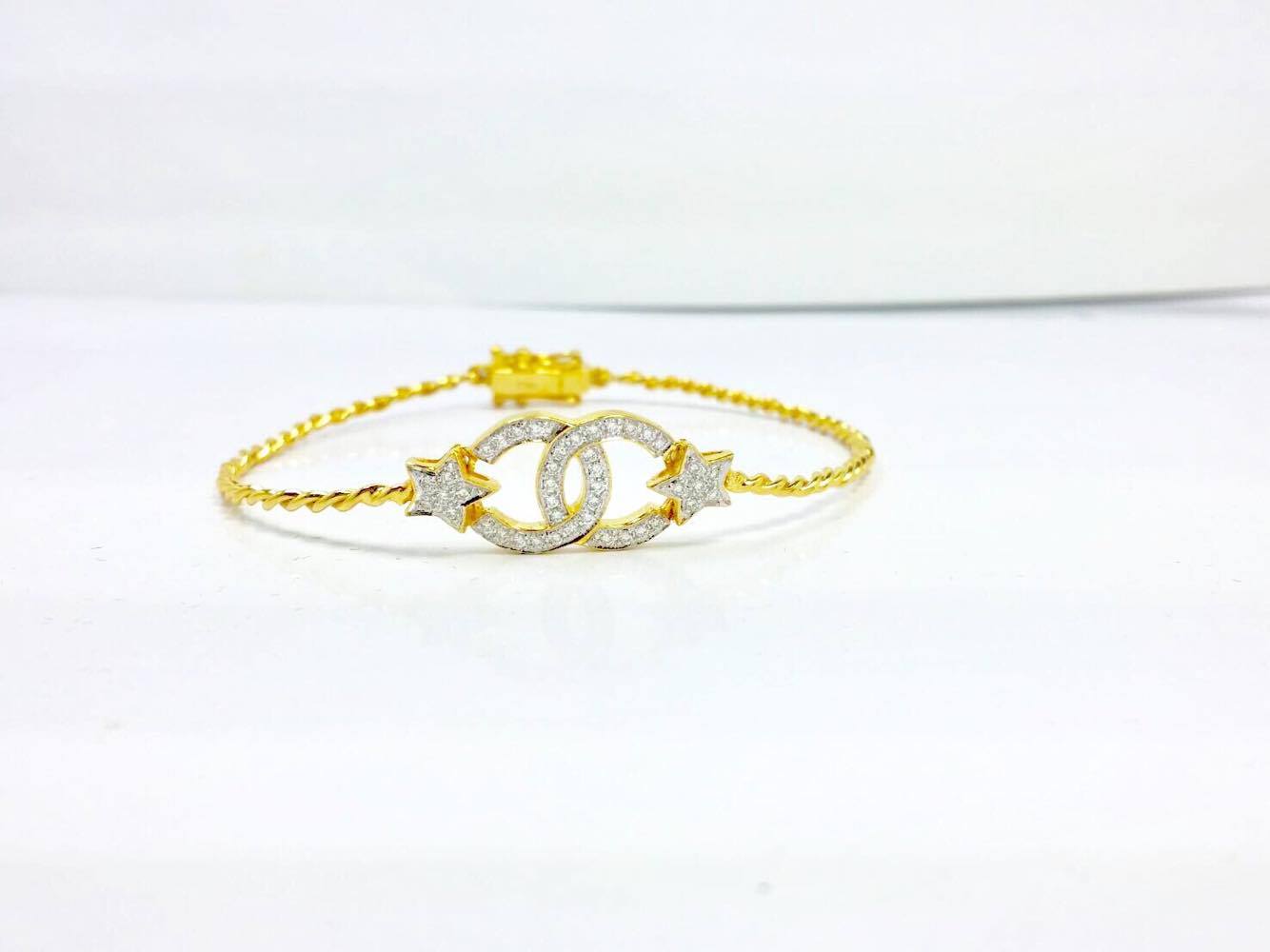 กำไลข้อมือ ทรงชาเนล ทองคำแท้ 18K หนัก 6.184 กรัม / เพชรเบลเยี่ยมแท้ น้ำ 97 จำนวน 52 เม็ด หนัก 0.24 กะรัต เพิ่มเติม