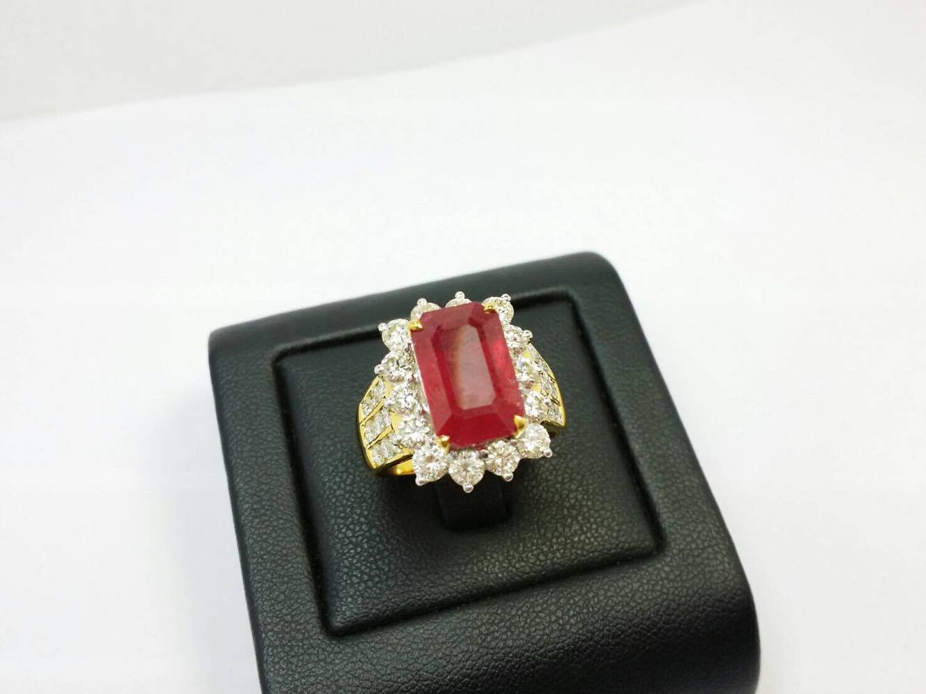 แหวนทองคำแท้ 18K หนัก 9.95 กรัม / ประดับทับทิมแท้ สีแดงสวยมาก หนักกว่า 8 กะรัต / ล้อมด้วยเพชรแท้ 32 เม็ด หนัก 1.96 กะรัต /ไซร์ 57 (แก้ไซร์ ฟรีค่ะ)เพิ่มเติม
