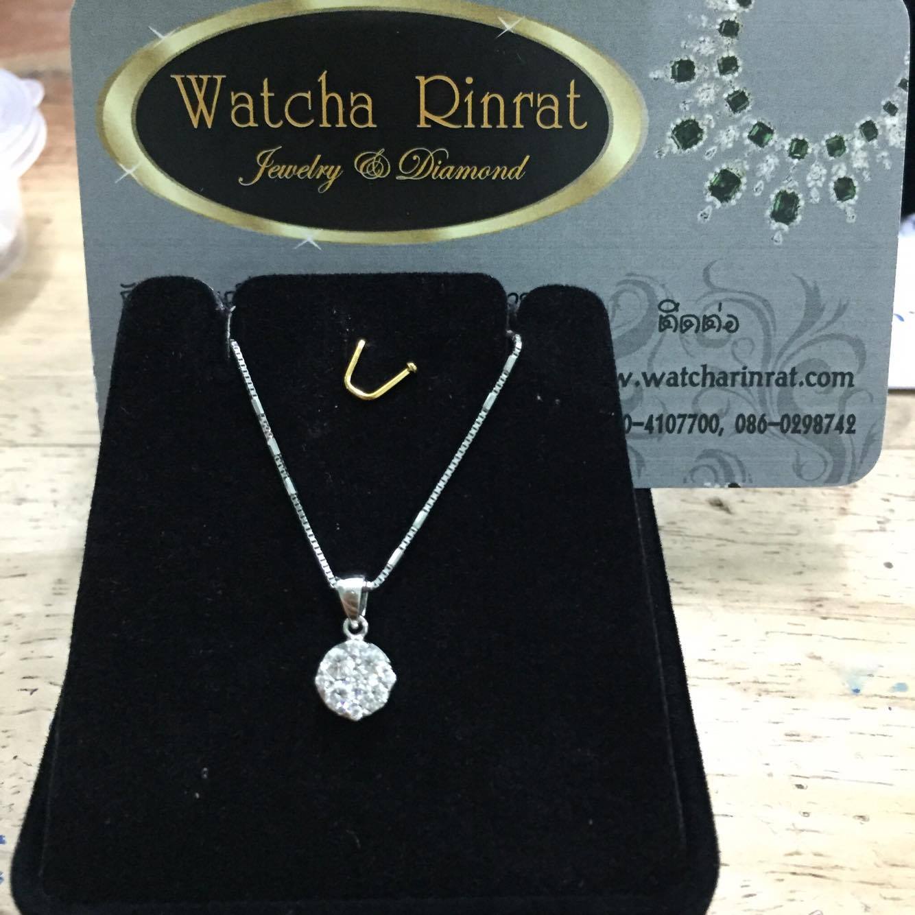 จี้เพชรแท้ เหลี่ยมเบลเยี่ยม น้ำ 97 ขาวใส ไฟดี มองคล้ายเพชรเม็ดใหญ่ ไซร์กะรัต / เพชร 9 เม็ด หนัก 0.3 กะรัต / ทองคำขาว 9K หนัก 0.69 กรัมเพิ่มเติม