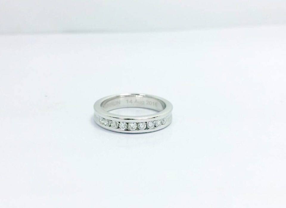 แหวนทองคำขาว 9K หนัก 3.8 กรัม เพชรแท้ 9 เม็ด 0.27 กะรัต ไซด์แหวน 48 เพิ่มเติม