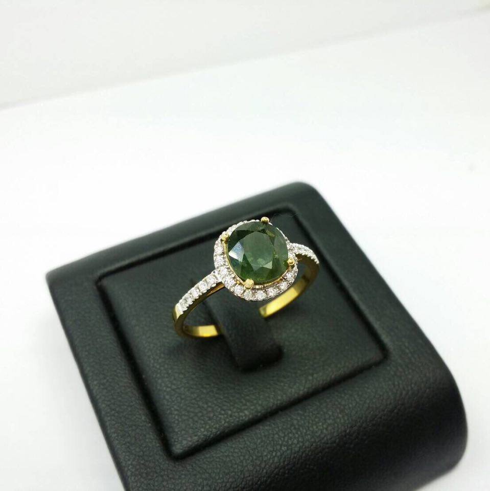 แหวนทองคำแท้ 9K หนัก 2.59 กรัม พลอยเขียวส่องแท้ หรือมรกตจันทร์ หนักกว่า 1.5 กะรัต ล้อมเพชรแท้ 30 เม็ด หนัก 0.3 กะรัต น้ำ 98 vvs เพิ่มเติม