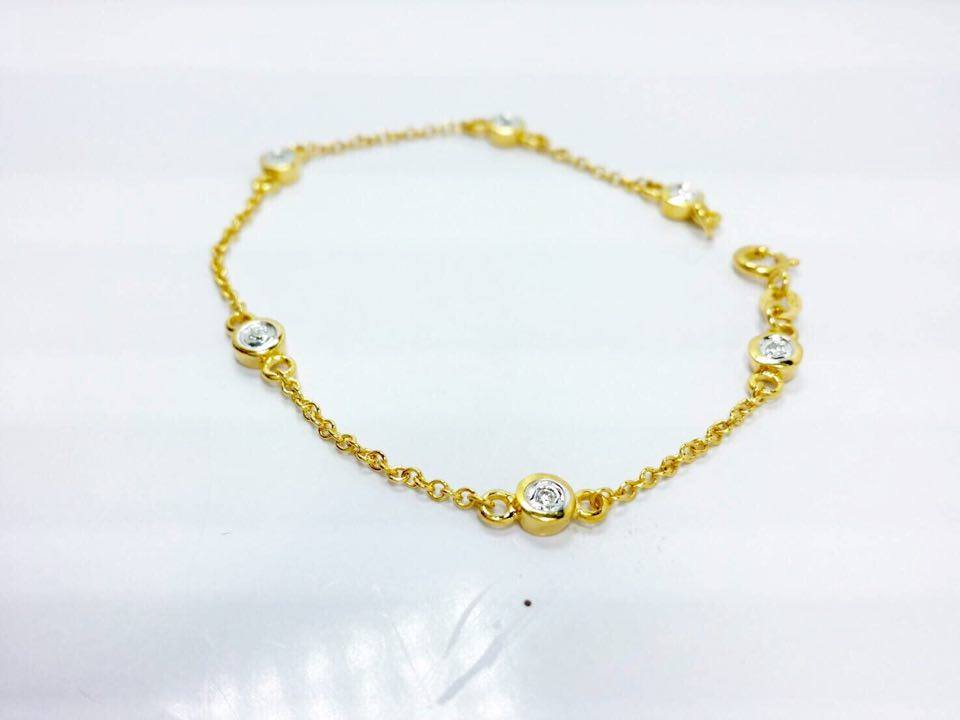 สร้อยข้อมือทองคำแท้ 9K หนัก 3 กรัม เพชรแท้ 6 เม็ด หนัก 0.12 กะรัต น้ำ 98 vvs ปั้มตรา ITALY 375 ความยาว 6.5 นิ้ว (ตัด/เพิ่มความยาวได้ค่ะ)เพิ่มเติม