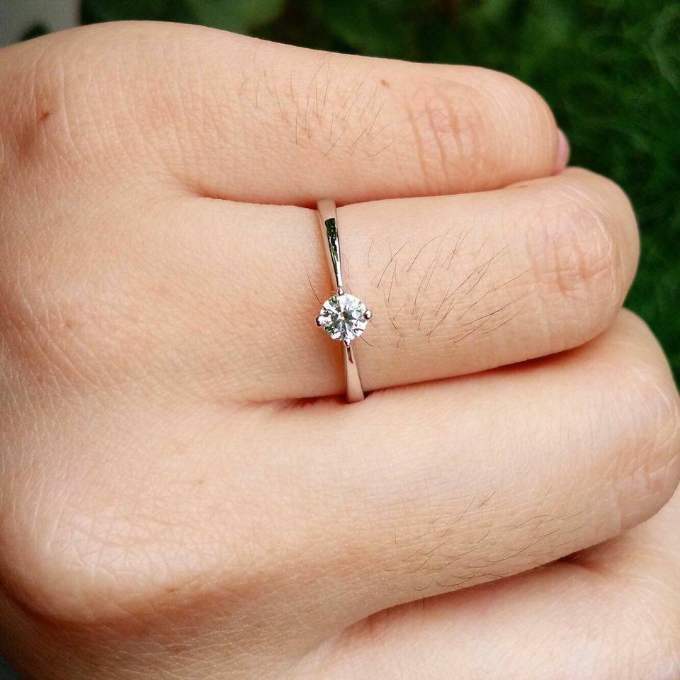 แหวนทองคำขาว 18K หนัก 2.1 กรัม เพชรแท้ 0.18 กะรัต เหลี่ยมเบลเยี่ยม น้ำ 95 vsเพิ่มเติม