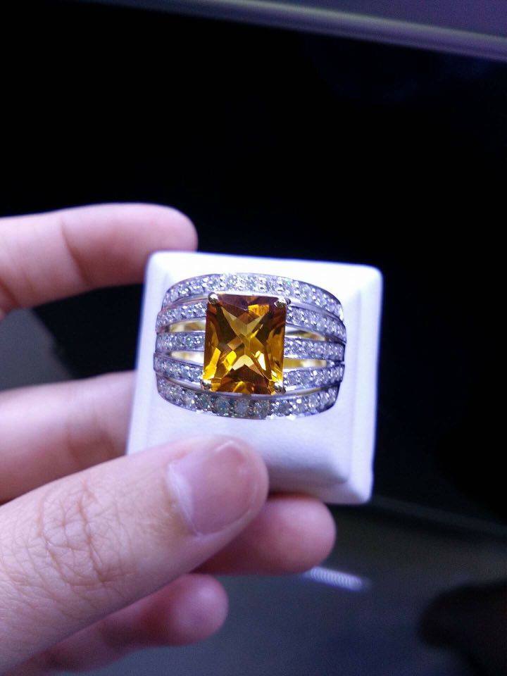 แหวนทองคำแท้ 90% หนัก 10 กรัม / เม็ดยอดประดับพลอยซิทรินแท้ 10 กะรัต น้ำงาม สวยเหมือนบุษราคัม / ด้านข้างประดับเพชรแท้ น้ำ 98 1.23 กะรัต เพชรขาวสวย ไม่มีตำหนิ / ไซร์แหวน 62 เพิ่มเติม