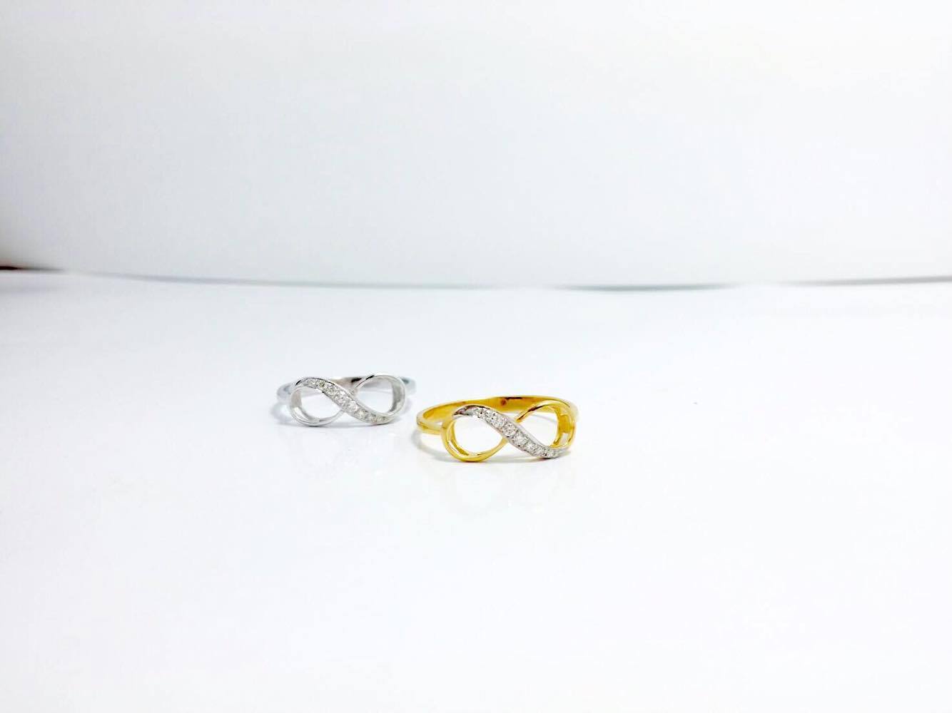 แหวนทรงอินฟินิตี้ ช่วยเสริมเงินทองโชคลาภให้แก่ผู้สวมใส่แบบไม่มีที่สิ้นสุด ตัวเรือนทำจากทองชมภู (พิ้งโกลว์) น้ำหนัก 1.75 กรัม ประดับเพชรแท้ 8 เม็ด 0.07 กะรัต น้ำ 98-99 ขาวสวยไม่มีตำหนิเพิ่มเติม