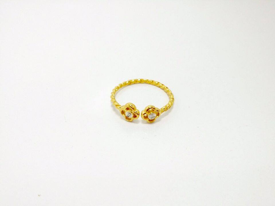 แหวนทรงดอกไม้สวยน่ารัก ใส่ติดนิ้วได้ตลอด ดูดีมีสไตล์ ตัวเรือนทอง 9K น้ำหนัก 1.8 กรัม ตรงกลางดอกประดับเพชรแท้ น้ำ 98 เหลี่ยมเบลเยี่ยม 2 เม็ด 0.04 กะรัต ไซด์แหวนเป็นฟรีไซด์ สามารถปรับได้ตามนิ้วคะเพิ่มเติม