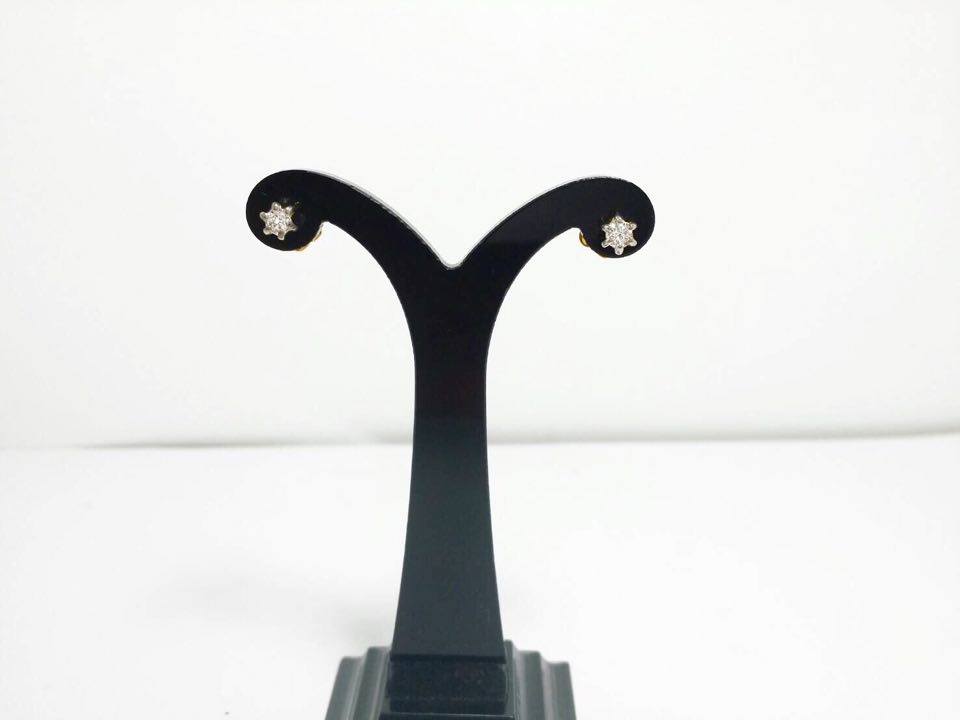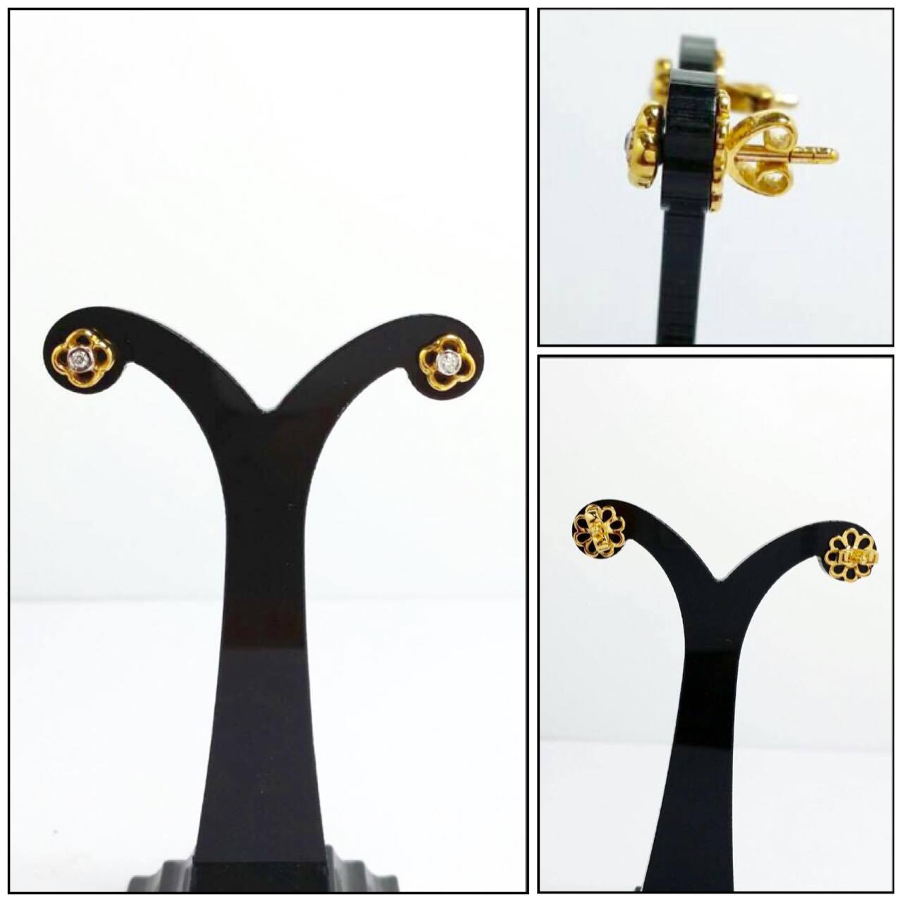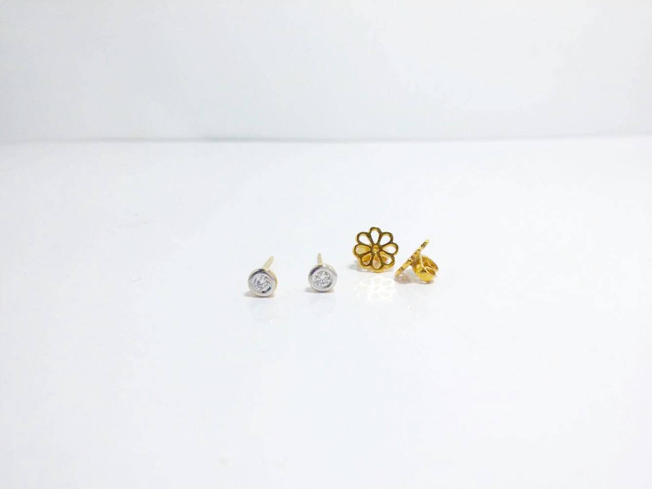 ตุ้มหูดอกไม้ สวยเก๋น่ารัก ใส่ติดหูได้ตลอด แป้นหลังเป็นลายดอกไม้สวยงาม แน่นหนาไม่หลุดง่าย ตัวเรือนทองคำแท้ 9K หนัก 1.9 กรัม ตรงกลางประดับเพชรแท้ 2 เม็ด หนัก 0.04 กะรัต น้ำ 98 เพชรเบลยี่ยมเพิ่มเติม