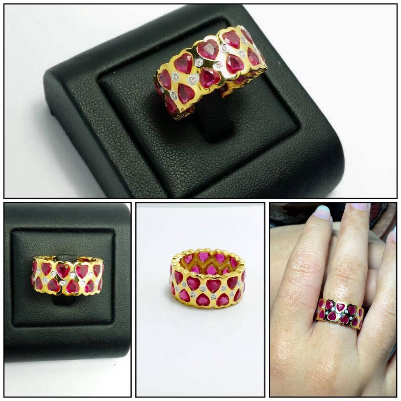 แหวนทับทิมแท้ จากพม่า รูปหัวใจสีแดงสวยมาก และทรงนี้หายากมากๆ ด้วยคะ ตัวเรือนแหวนทำจากทองคำแท้ 90% น้ำหนัก 9.5 กรัม ประดับทับทิม 24 เม็ด เพชรแท้ 24 เม็ด น้ำหนักเพชร 0.24 กะรัต น้ำ 99 ไซด์นิ้วสามารถสั่งทำได้ค่ะเพิ่มเติม